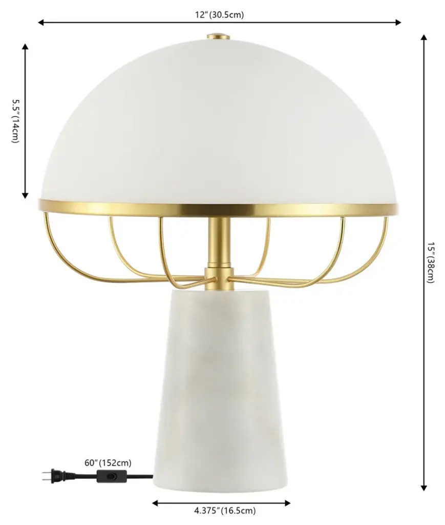 Make a stylish and eye-catching impact with our beautiful Fraser table lamp. Inspired by mid-century modern design, our table lamp adds distinct charm and character to any surface. Its gorgeous dome shade is supported by a curved, architectural base to make a stunning statement. The milky glass shade diffuses a soft glow to create a radiant and welcoming effect. Featuring a white marble base and brass accents, our table lamp adds gleaming glamour and chic style to your nightstand, console, or end table.