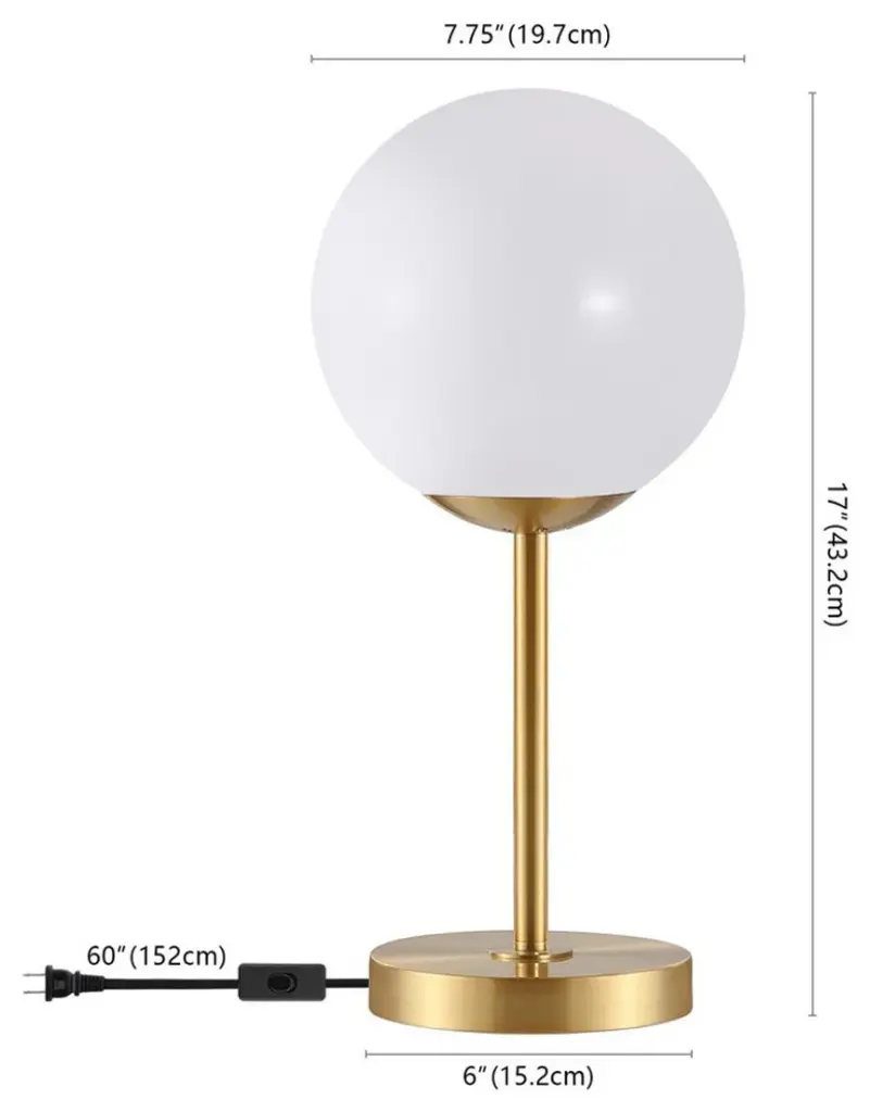 Give your living space a chic modern glow with this Gemini Table Lamp. Ideal for bringing eye catching intrigue to minimalist styled interiors, Gemini''s white globe shade shines fabulously against its sleek gold iron body. Use in pairs to frame a sofa for heightened decorative drama.Lamp Certified: ULType of bulb included: G14Number of bulb(s) included: 1Max Wattage :40Light Bulb Base Type: E26 Screw Terminal
