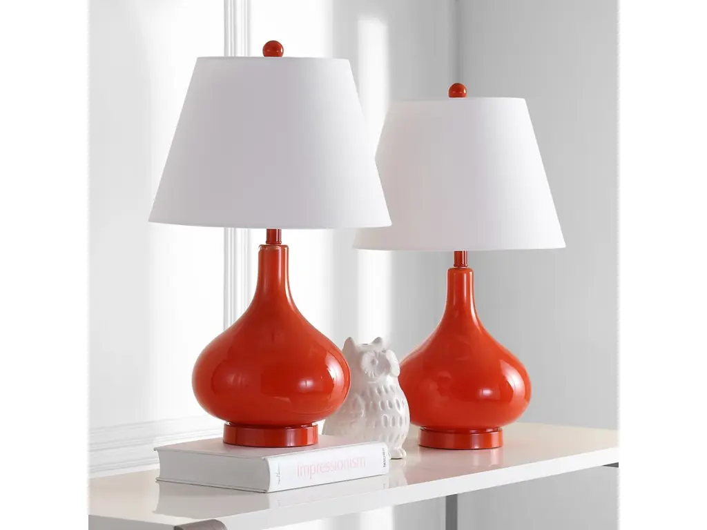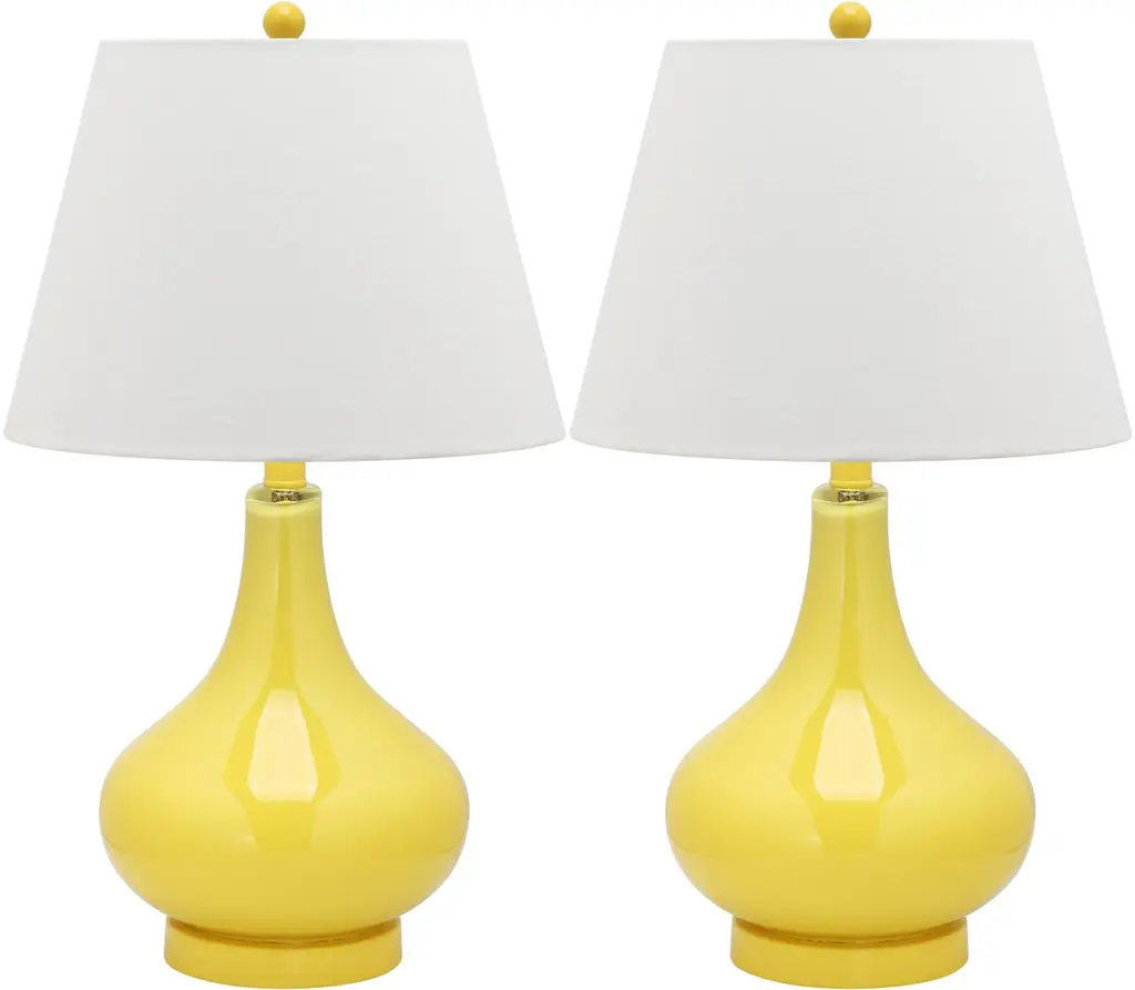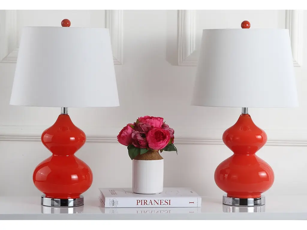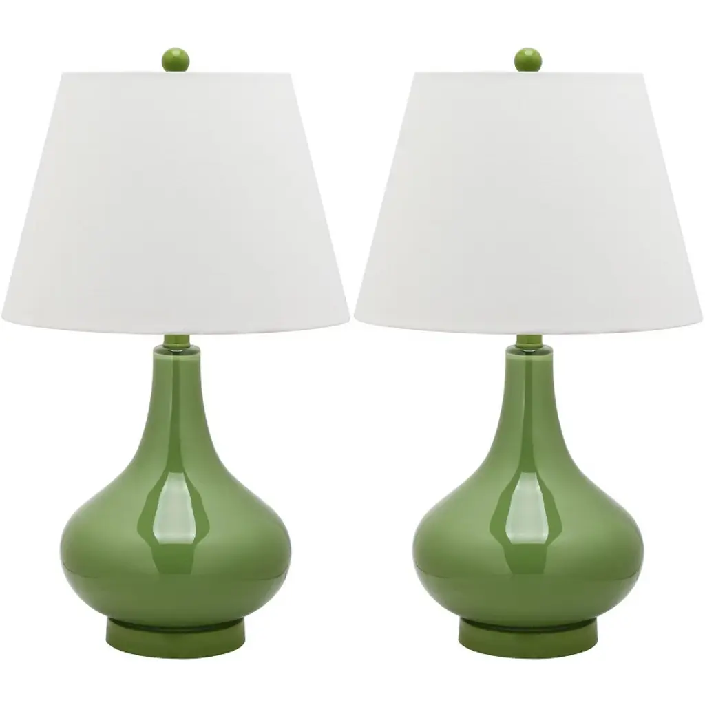 Illuminate your living room, bedroom or family room in a contemporary way with this gorgeous gourd table lamp. Shapely glass base is topped with a clean and simple white fabric shade for a fresh complement. Sold as a set of two.