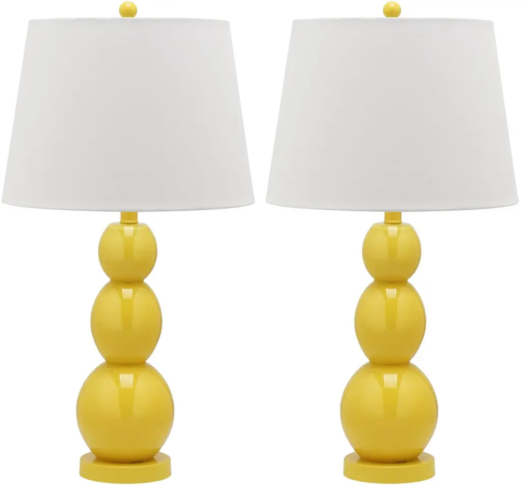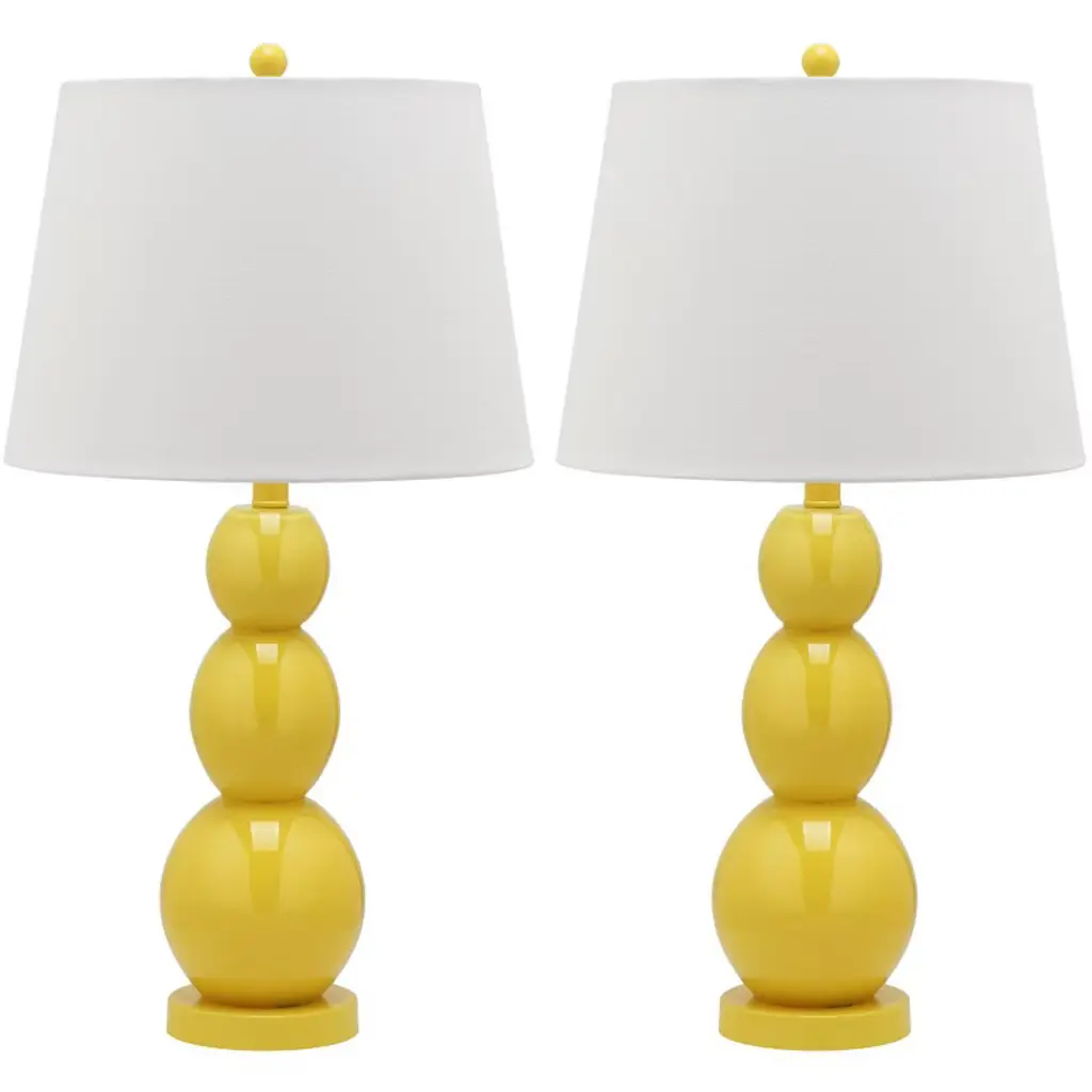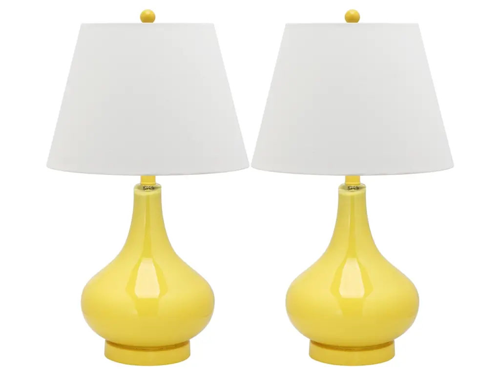 Illuminate your living room, bedroom or family room in a contemporary way with this gorgeous gourd table lamp. Shapely glass base is topped with a clean and simple white fabric shade for a fresh complement. Sold as a set of two.