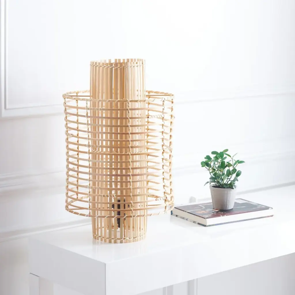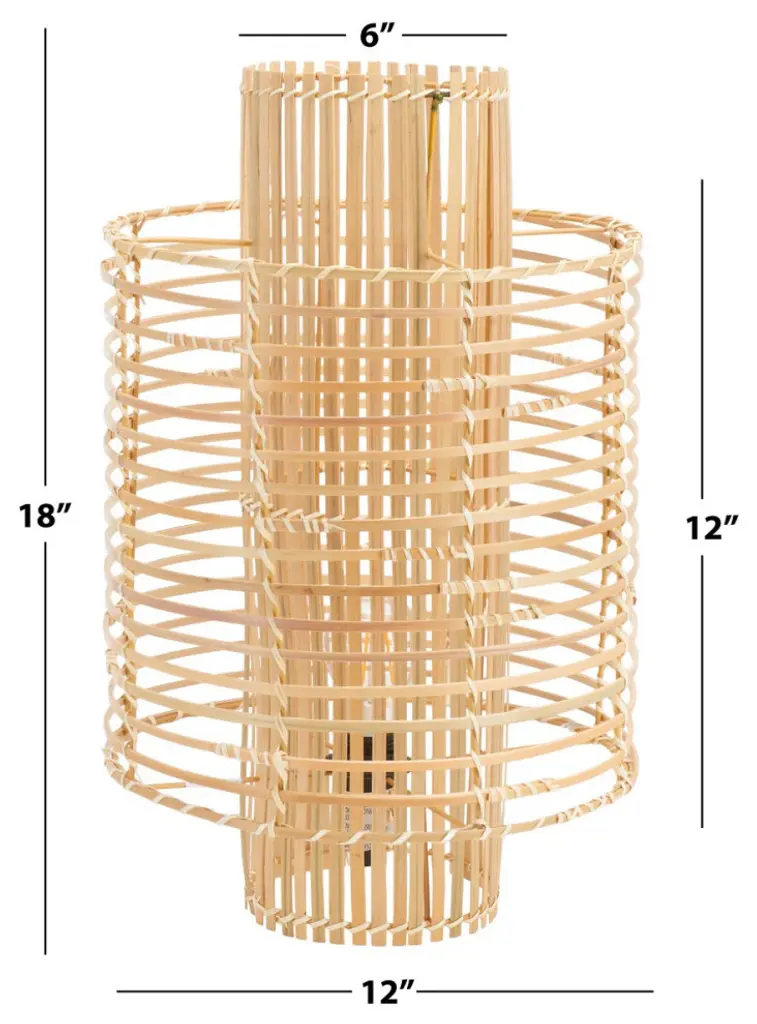Uplift your home with the breezy and artsy vibe of our Hermera table lamp. Crafted with bamboo, the lamp replicates a lantern with its unique textures and artistry. Beautifully layered, it juxtaposes horizontal bands against a vertical weave to capture the eye. Enriched with the natural textures of bamboo in a natural colored shade, our table lamp serves as the perfect complement to your side table or credenza. The open weave of our table lamp casts a soft glow and intriguing shadows to enliven any corner.Lamp Certified: ULType of bulb included: A19Number of bulb(s) included: 1Max Wattage :60Light Bulb Base Type: E26