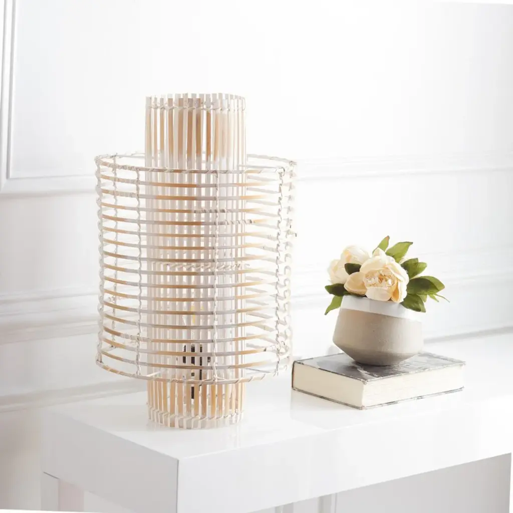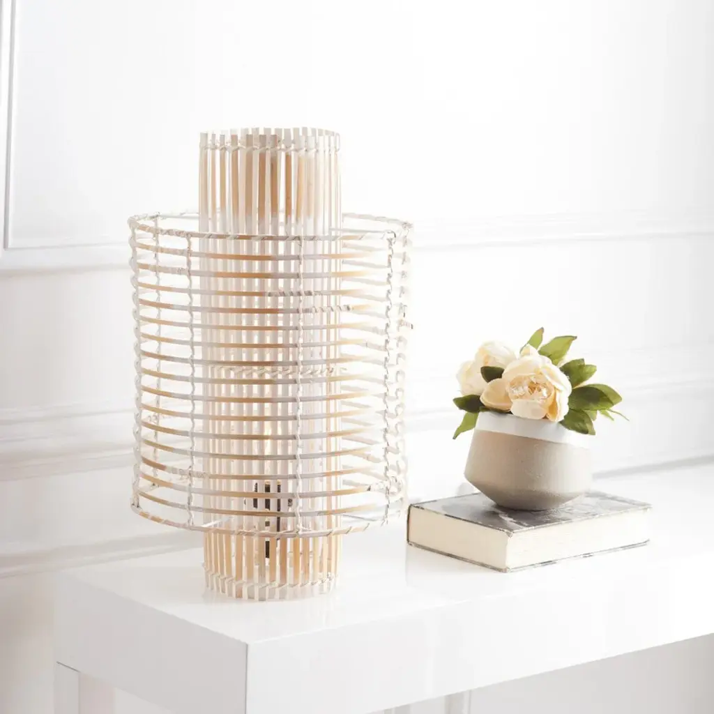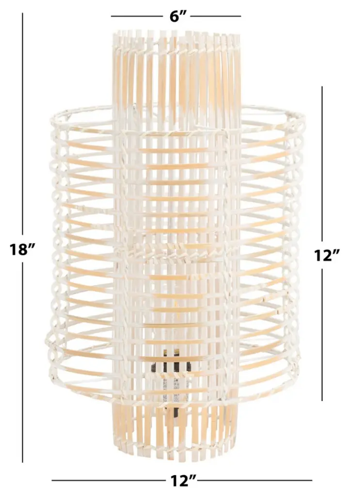 Uplift your home with the breezy and artsy vibe of our Hermera table lamp. Crafted with bamboo, the lamp replicates a lantern with its unique textures and artistry. Beautifully layered, it juxtaposes horizontal bands against a vertical weave to capture the eye. Enriched with the natural textures of bamboo in a white washed shade, our table lamp serves as the perfect complement to your side table or credenza. The open weave of our table lamp casts a soft glow and intriguing shadows to enliven any corner.Lamp Certified: ULType of bulb included: A19Number of bulb(s) included: 1Max Wattage :60Light Bulb Base Type: E26