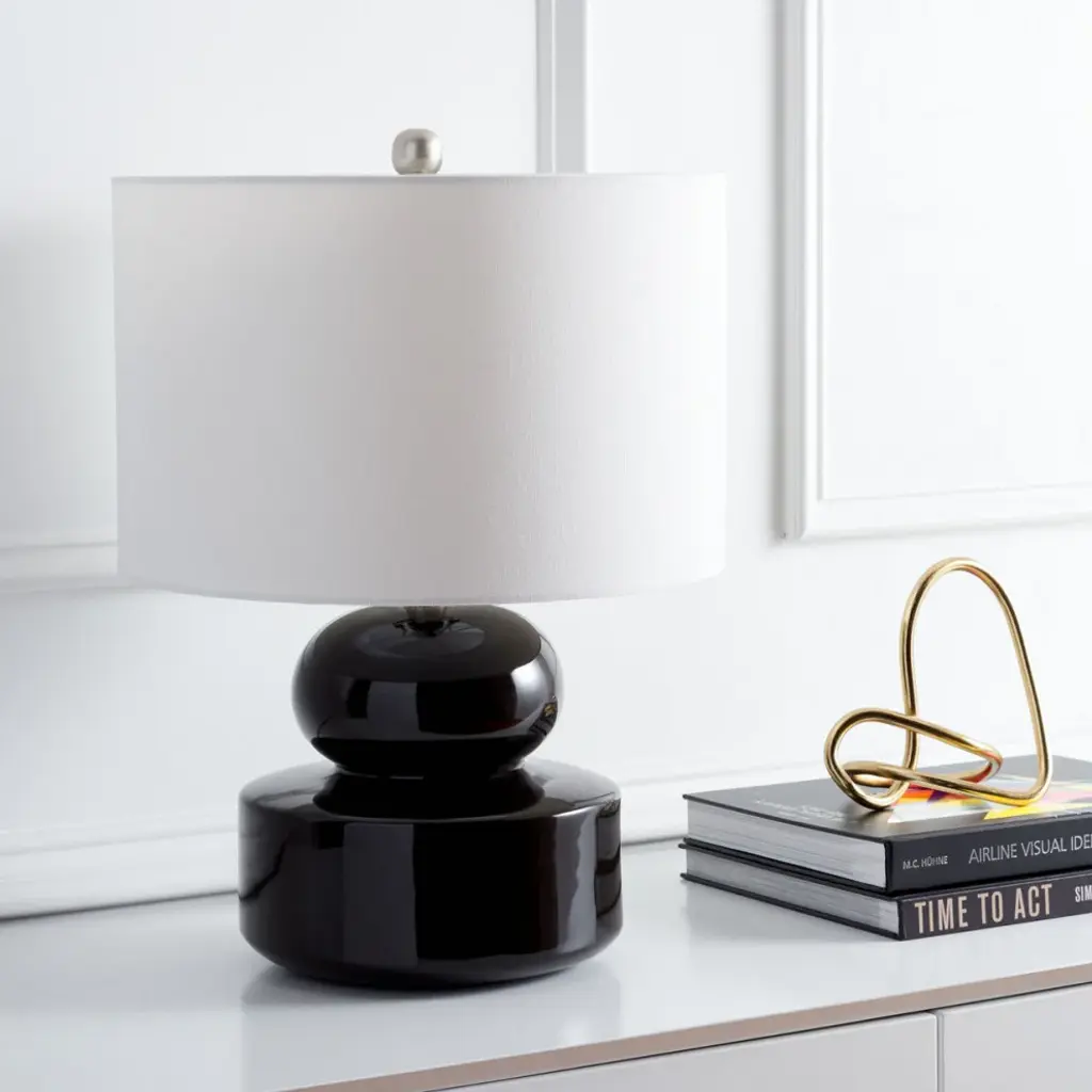 This Ilene Table Lamp is the perfect accent to give any decor a bold finishing touch. Ilene''s striking black ceramic silhouette emanates a stunning modern art feel, beautifully balanced by a sleek white drum shade.