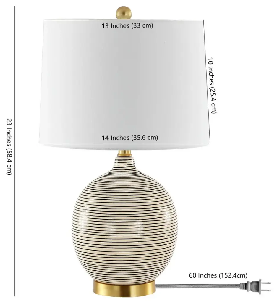 This Kremp Table Lamp transforms the ancient art of pottery into eye-catching contemporary decor. Kremp''s illusionary striated grey ceramic provide an eye-catching sense of depth and motion, while a built-in USB port at its shining gold base makes Kremp a must-have in any room.Lamp Certified: ULType of bulb included: LED A19 9WNumber of bulb(s) included: 1Max Wattage :100Light Bulb Base Type: E26 Screw Terminal