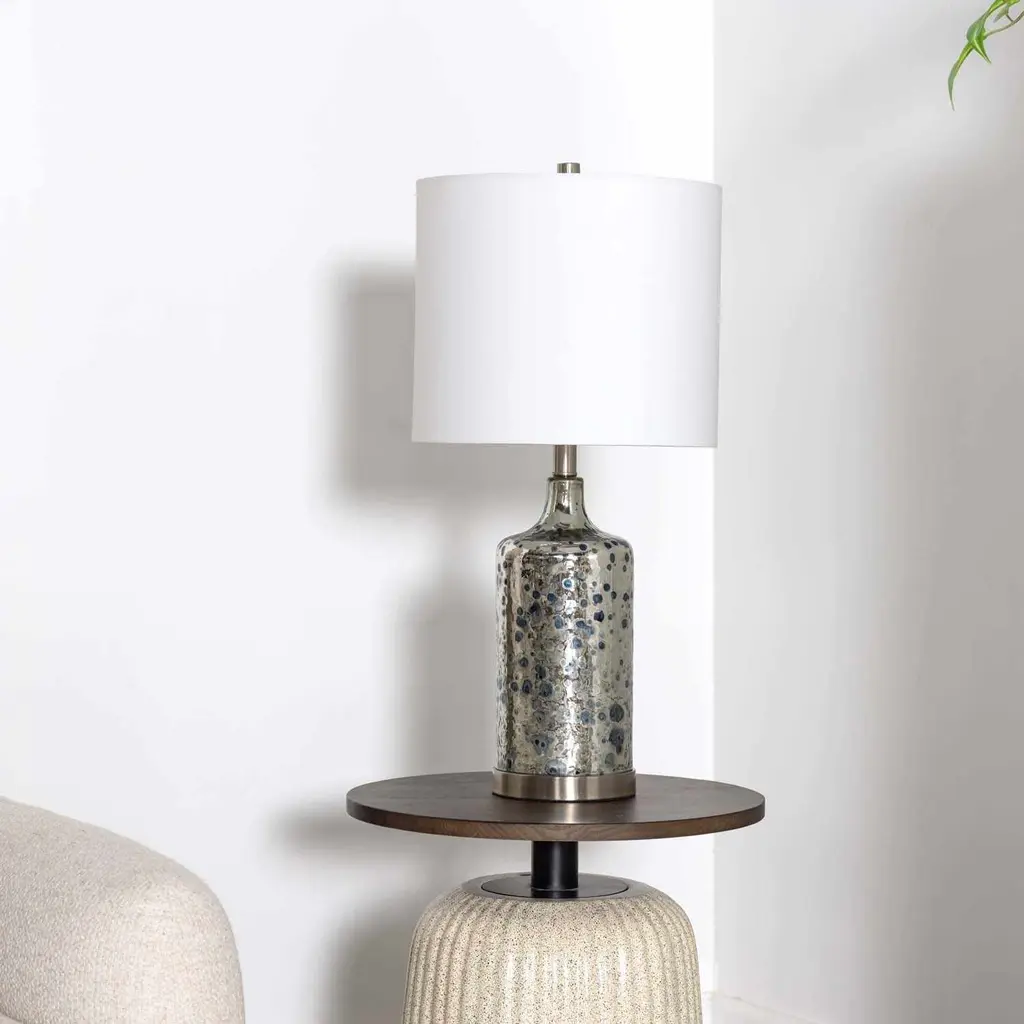 Inspired by the work of modern sculptors, this contemporary table lamp brings high style to the living room. Crafted with a subtle, delicate texture, its bold silver finish is refreshing and light. Its tapered shade casts a welcoming glow.