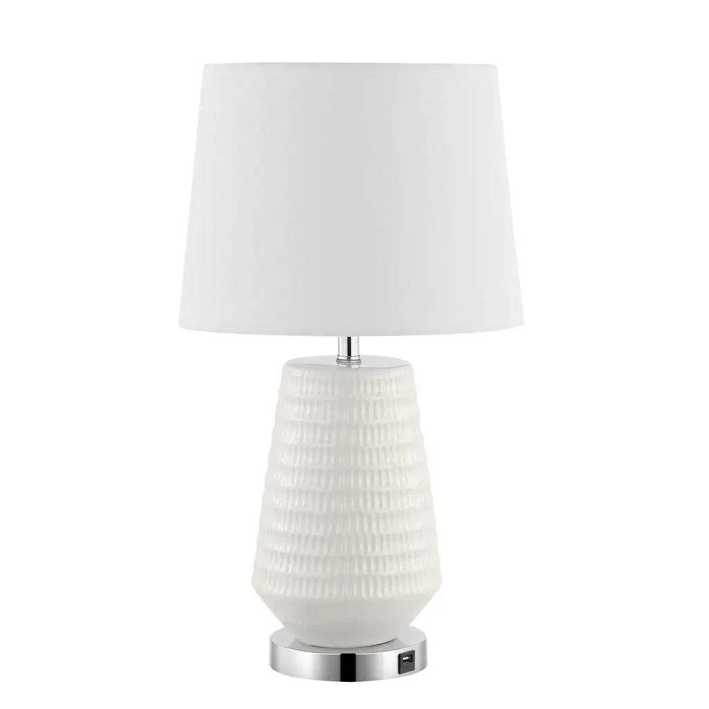 Inspired by the work of modern sculptors, this contemporary table lamp brings high style to the living room Crafted with a subtle, delicate texture, its bold white finish is refreshing and light Its tapered shade casts a welcoming glow