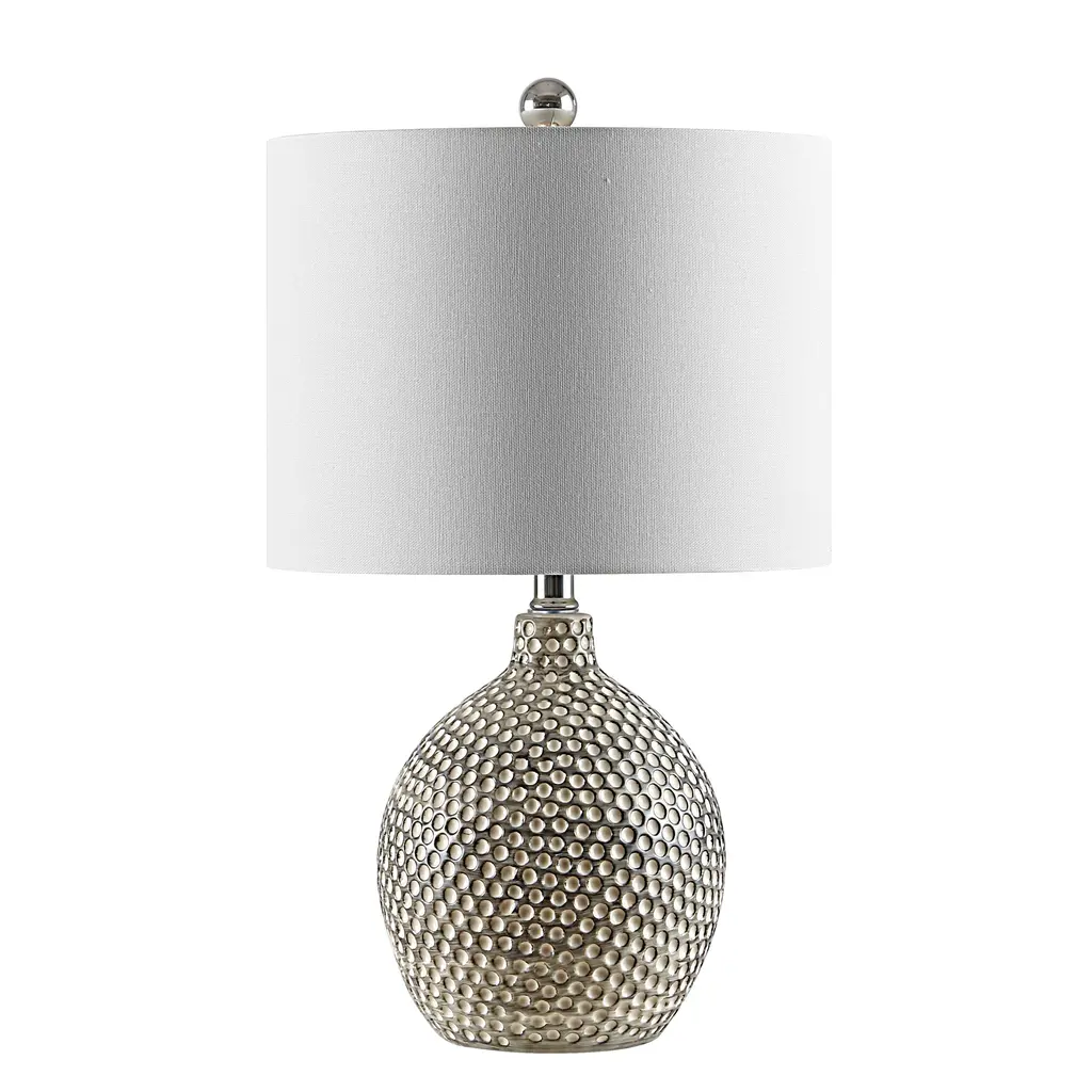 Give your décor a modern-retro touch with this Breeda Table Lamp. Styled after pop art from the 50's and 60's, Breeda's neutral tones, subtle distressing, and white drum shade soften the look while its iconic dotted pattern makes it a striking statement piece in any eclectic interior.