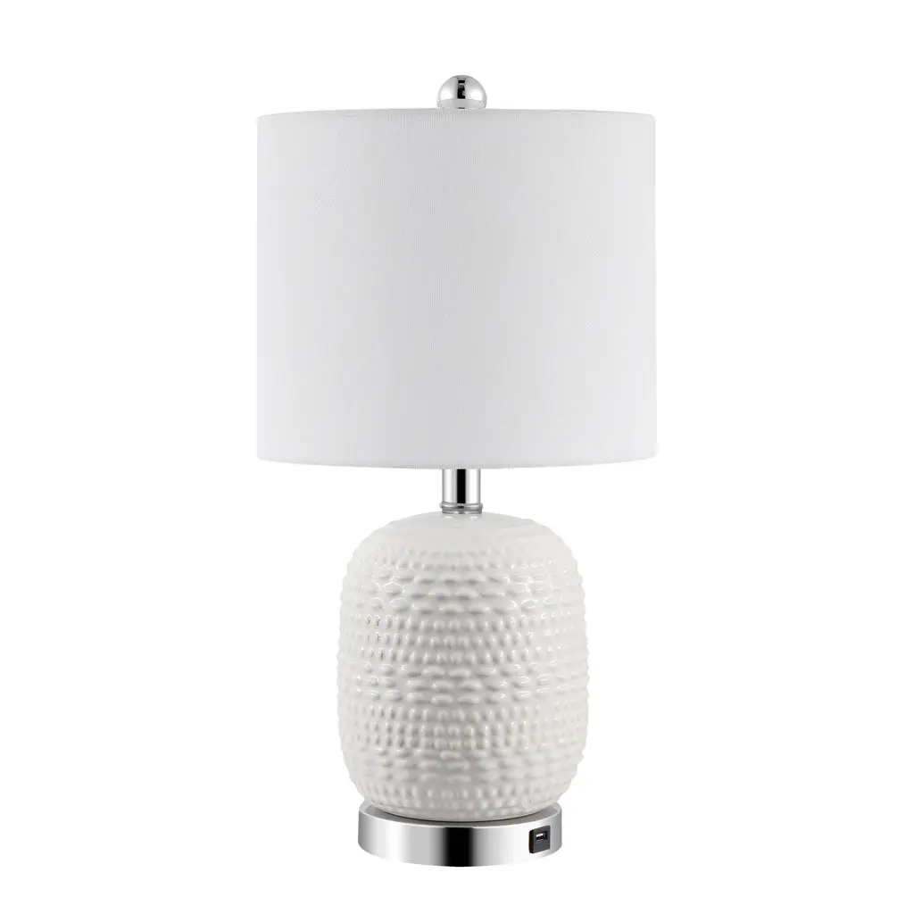 Inspired by contemporary sculpture, this artistic table lamp refreshes any living room or bedroom Often used in pairs, its luxurious texture is highlighted by a bright white finish, paired with a chic silver base and a matching finial