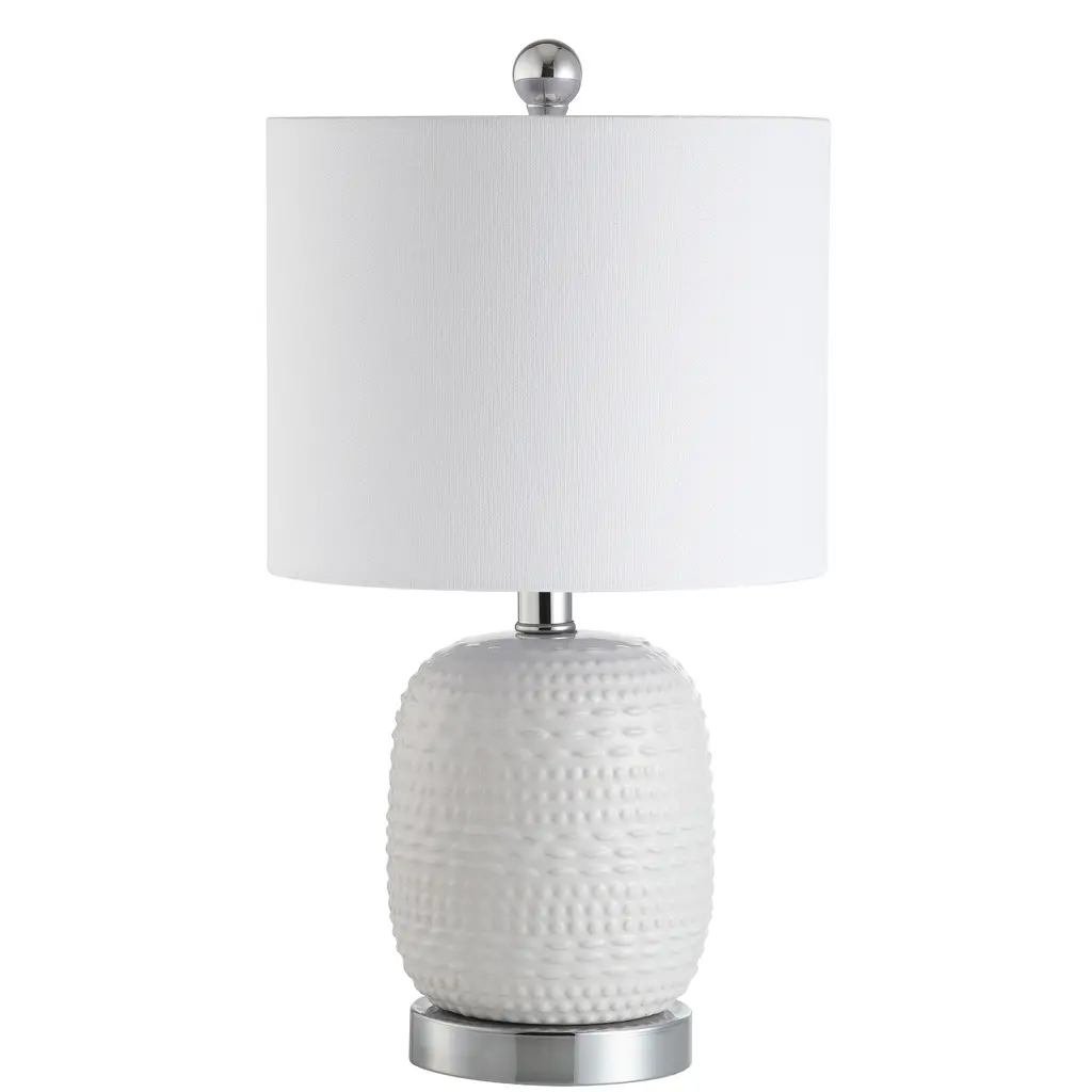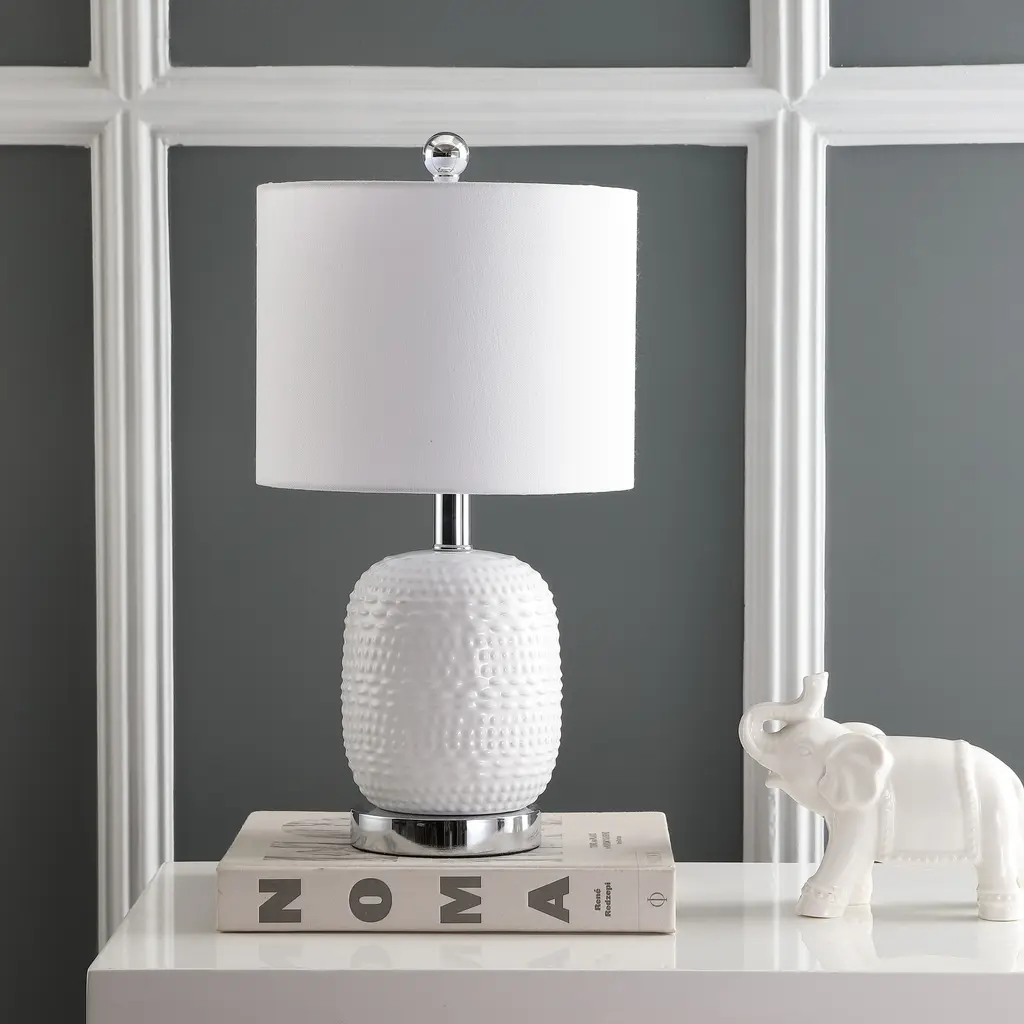 Inspired by contemporary sculpture, this artistic table lamp refreshes any living room or bedroom Often used in pairs, its luxurious texture is highlighted by a bright white finish, paired with a chic silver base and a matching finial