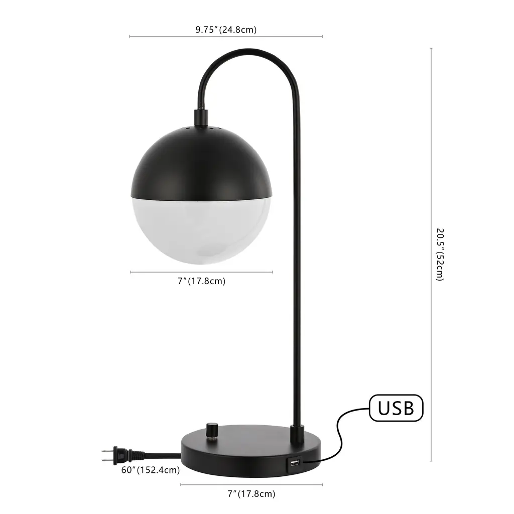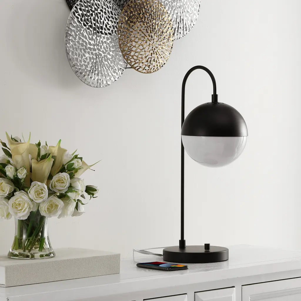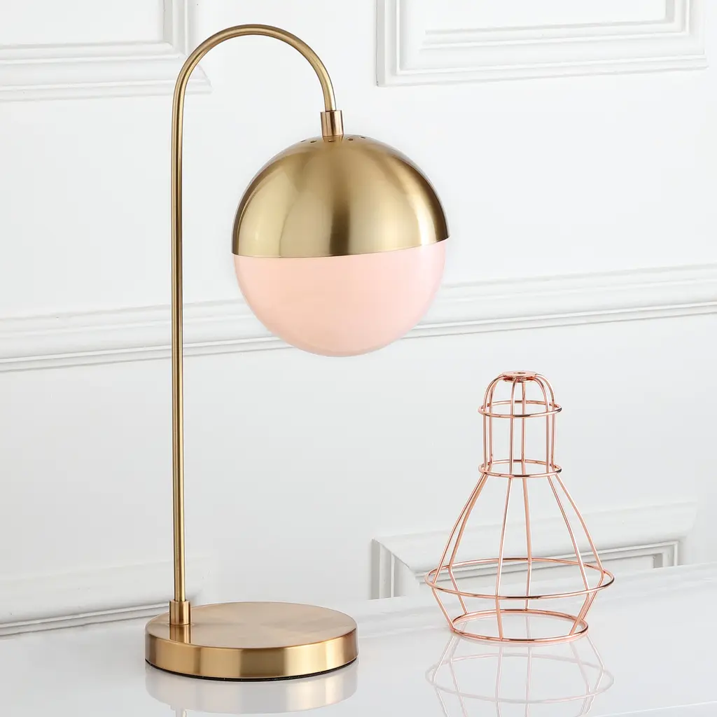 Inspired by edgy mid-century modern style, this contemporary table lamp steals the show in any living room Designed with a luxurious modern brass and gold finish, it diffuses light from a partially white retro globe shade to create a warm glow Features:Bulb Wattage: 25 WLighting Type: Table LampNumber of Lights: 1 LightProduct Features: Bulbs IncludedLamp Type: Table LampMaterial: MetalShade Shape: RoundLighting Style: ContemporaryColor: White, Gold