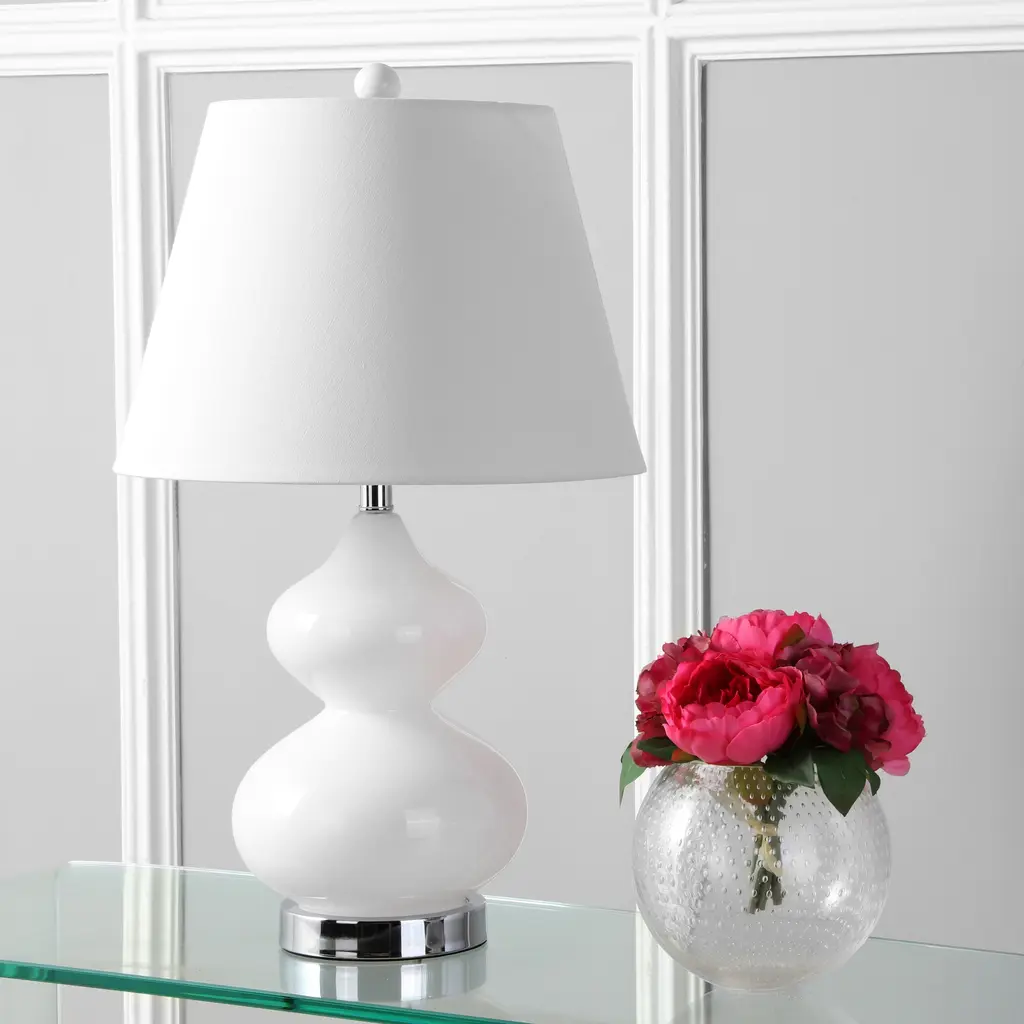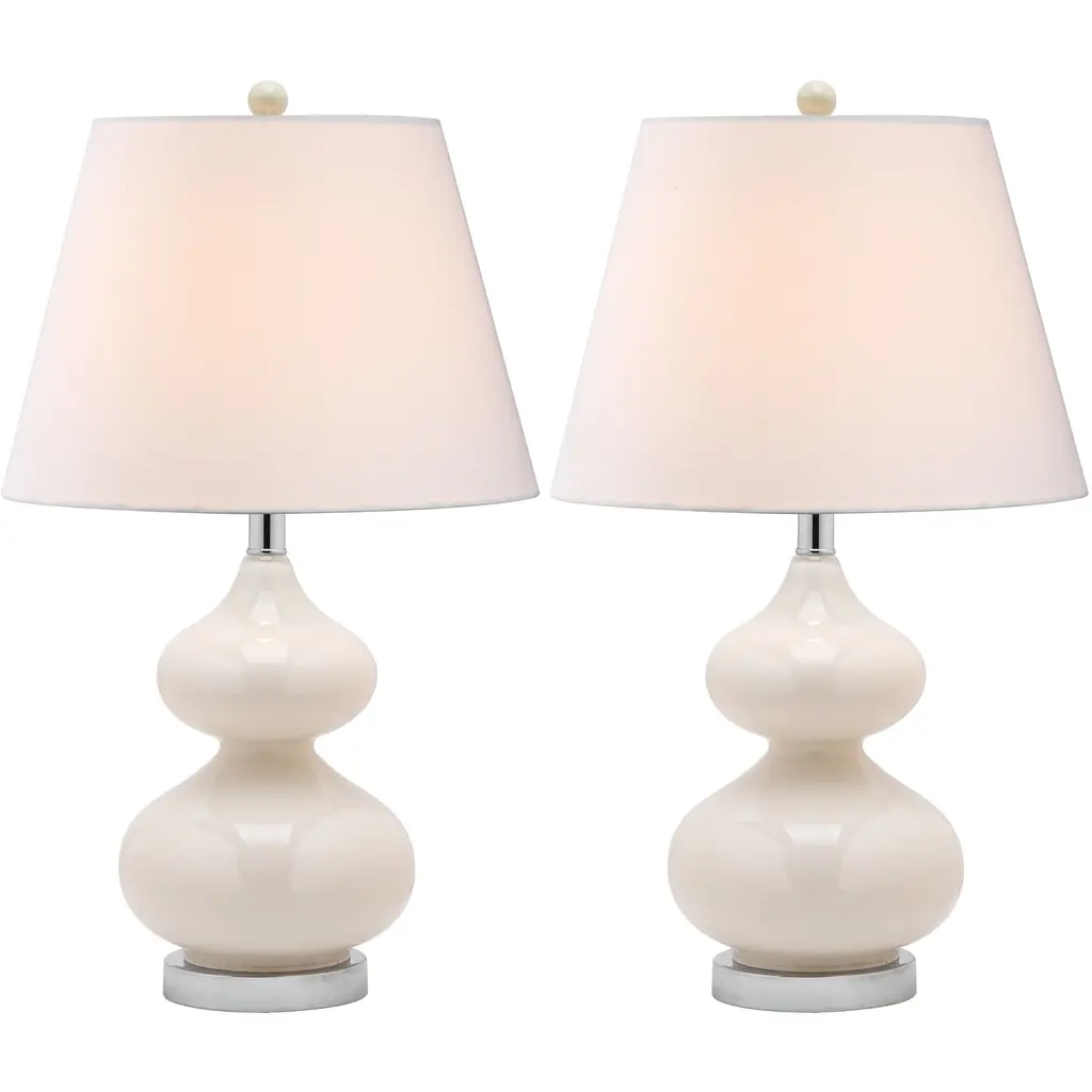 Safavieh Lighting 24-Inch Eva Double Gourd Glass White Table Lamp (Set Of 2) - 14"x14"x24" - 14"x14"x24"