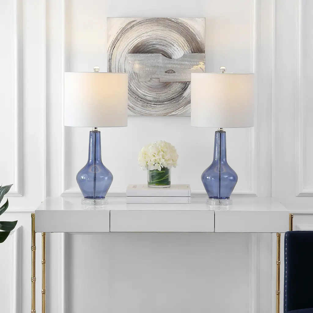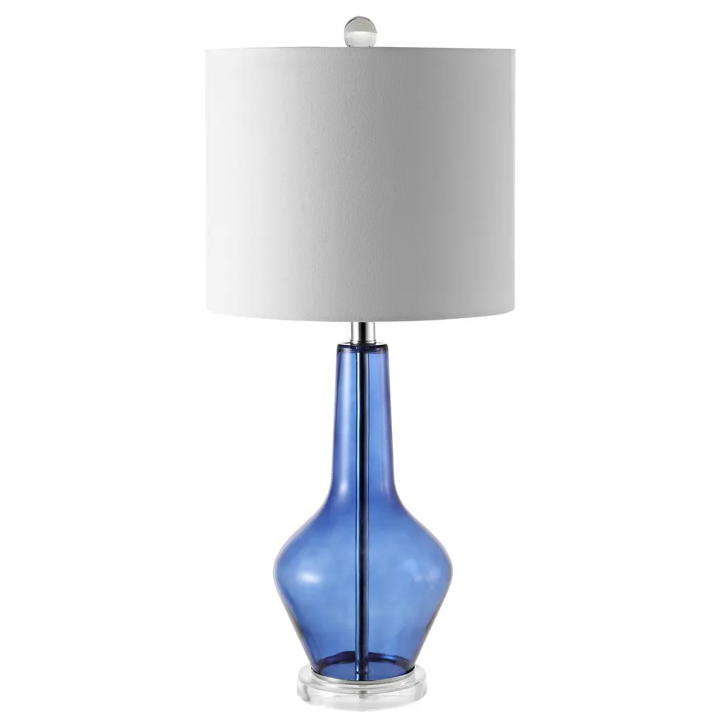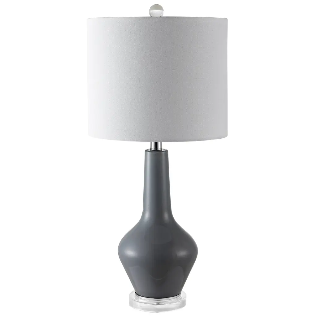 Upgrade any living room or bedroom with the clean modern curves of this contemporary table lamp. Crafted with sleek smoked grey glass to illuminate its exquisite form, it sits on a clear acrylic base and is topped with a complimentary white drum shade.