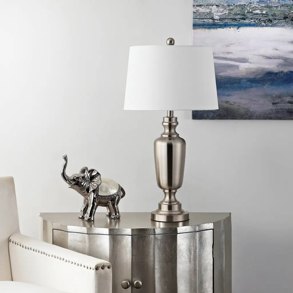 Safavieh Lighting 28-Inch Ezra Iron Table Lamp - 15" X 15" X 28" - Nickel