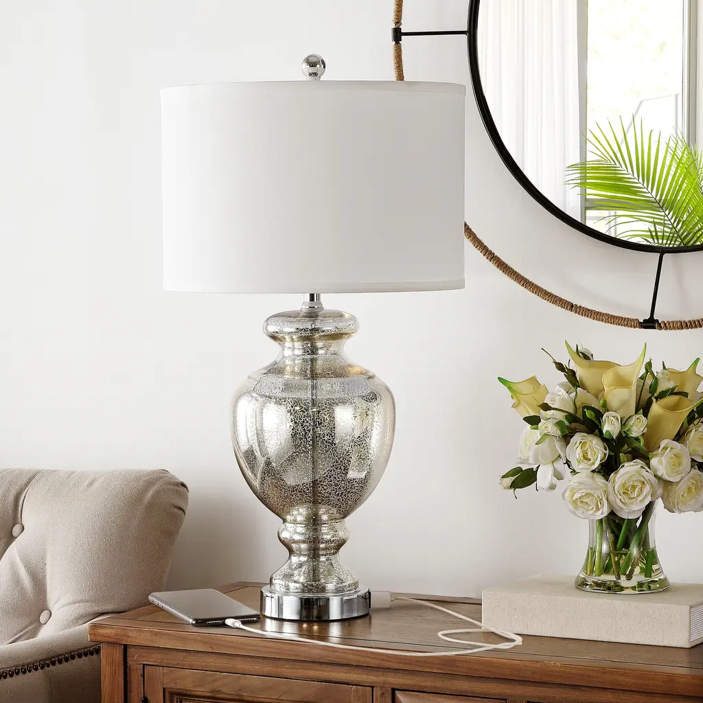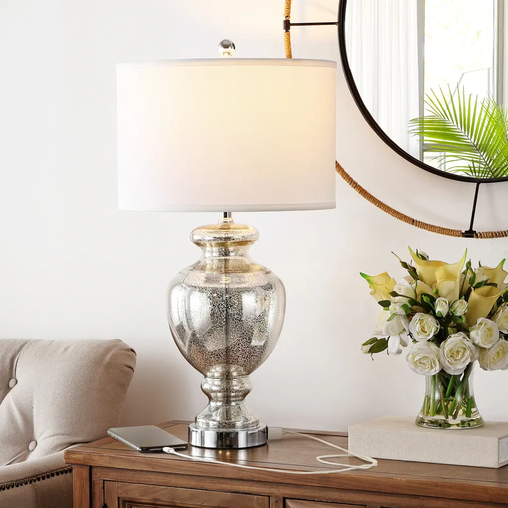 Safavieh Lighting 28 Inch Turquoise Glass Table Lamp (Set Of 2) - 15"w X 15"d X 28"h - 15"w X 15"d X 28"h - Mercury