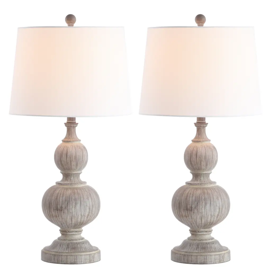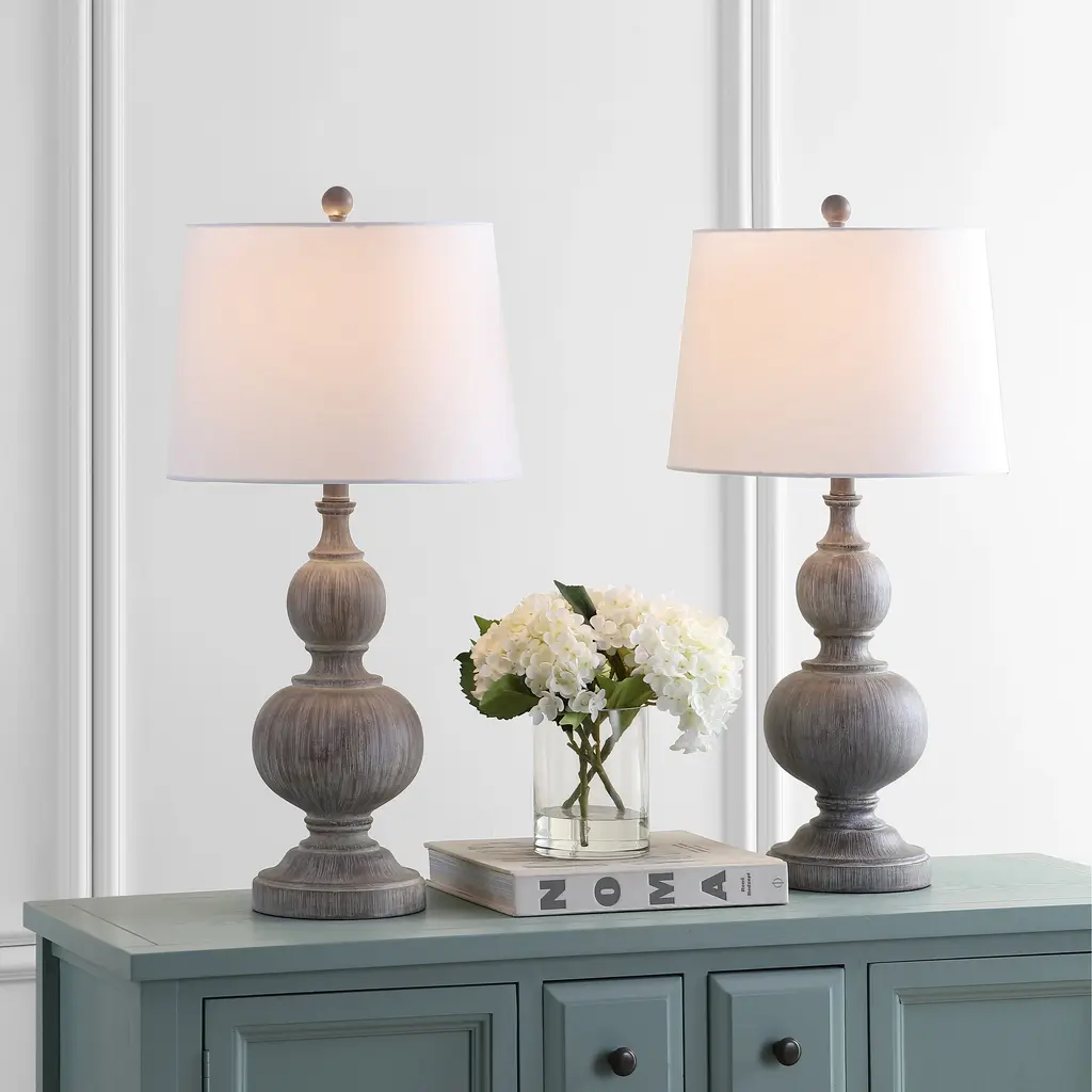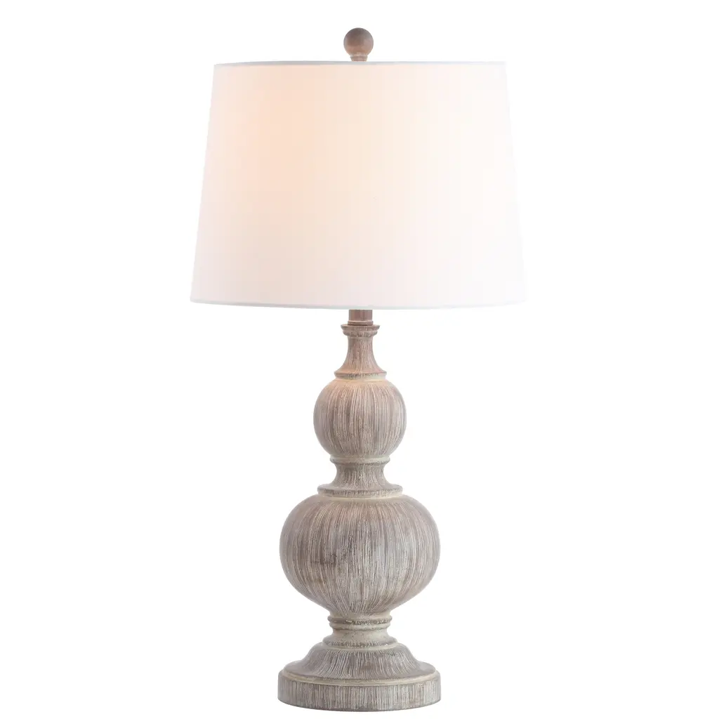Inspired by nature's beauty, this graceful table lamp instantly refreshes any living room. Designed with durable faux wood, its gentle curves feature a weathered, elegant finish that pairs perfectly with its matching finial and complementary cotton shade.