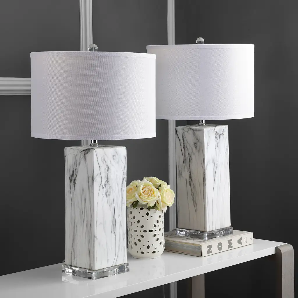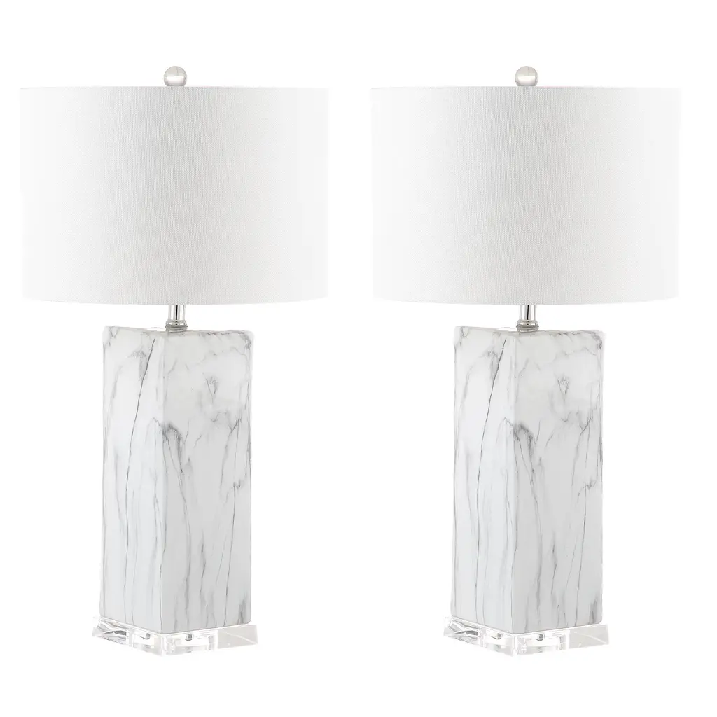 Safavieh Lighting 29-Inch Olympia Marble Table Lamp (Set Of 2) - 15wx15dx29h - Black/white/white Marble