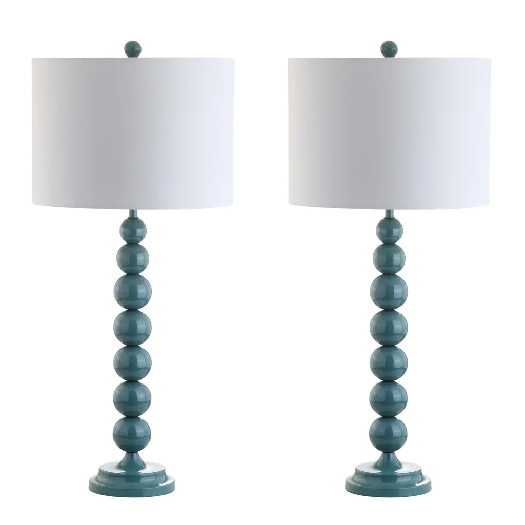Safavieh Lighting 31-Inch Jenna Stacked Ball Marine Blue Table Lamp (Set Of 2) - 14"x14"x31.5" - 14"x14"x31.5"