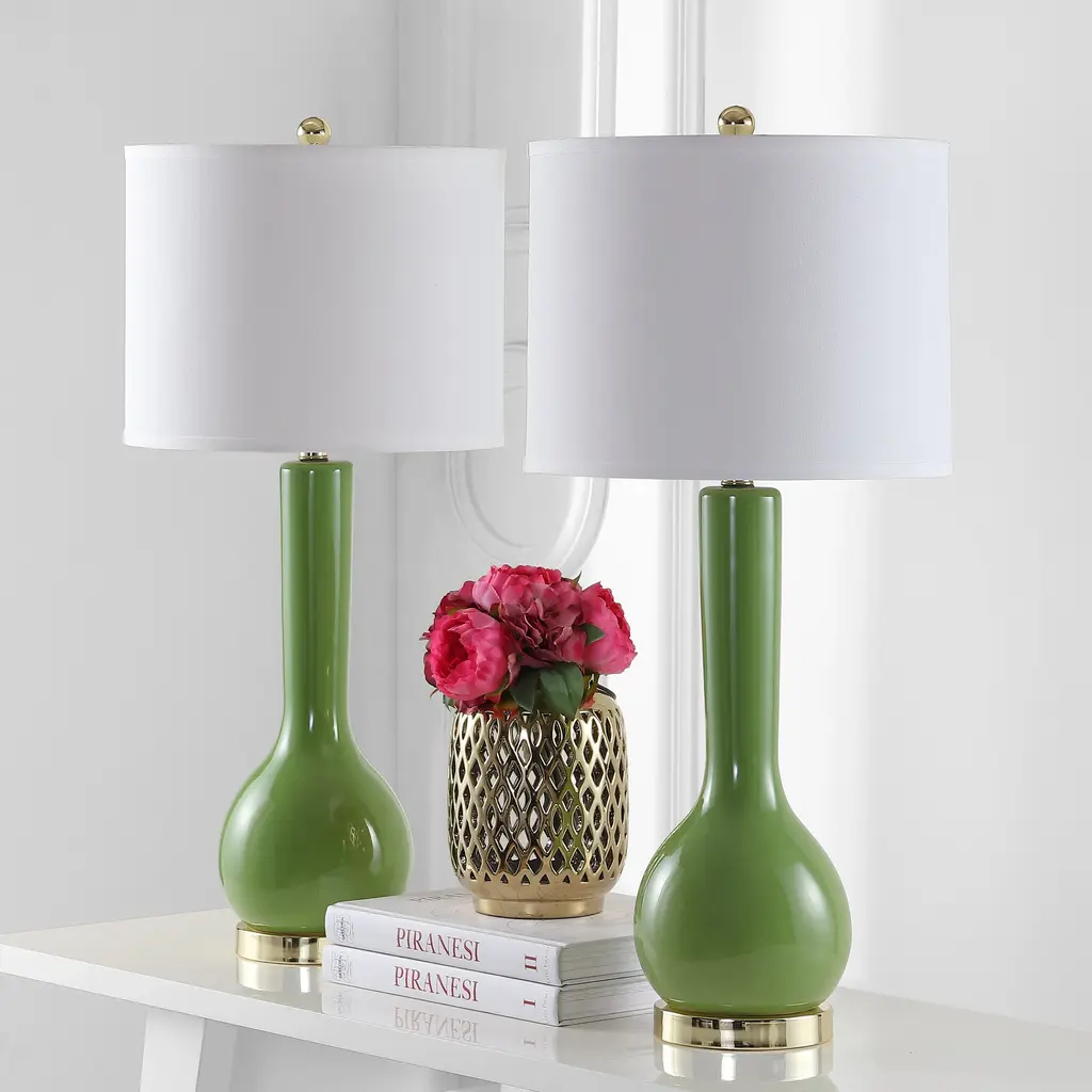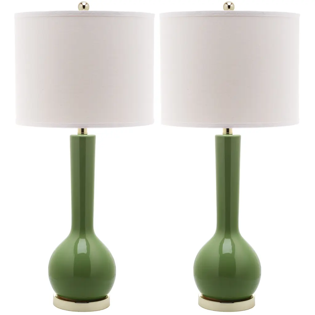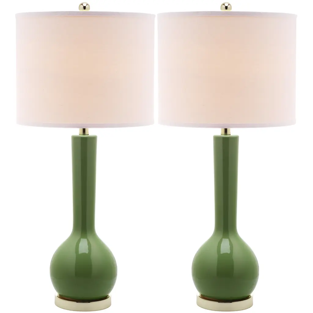 Safavieh Lighting 31-Inch Mae Long Neck Ceramic Green Table Lamp (Set Of 2) - 14"x14"x30.5" - 14"x14"x30.5"