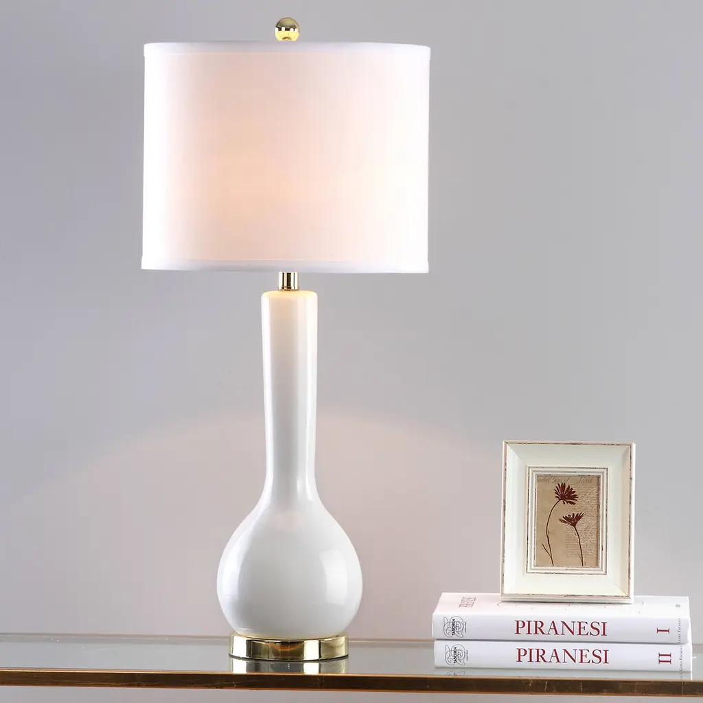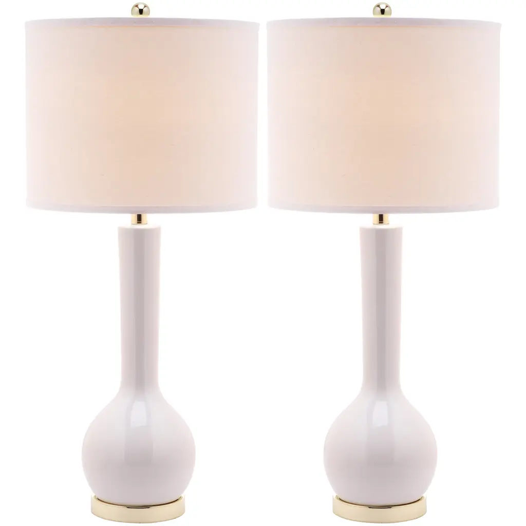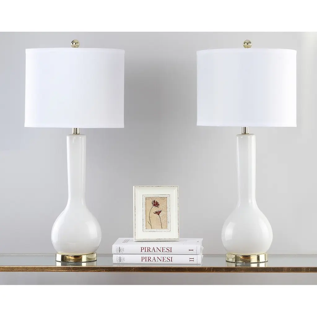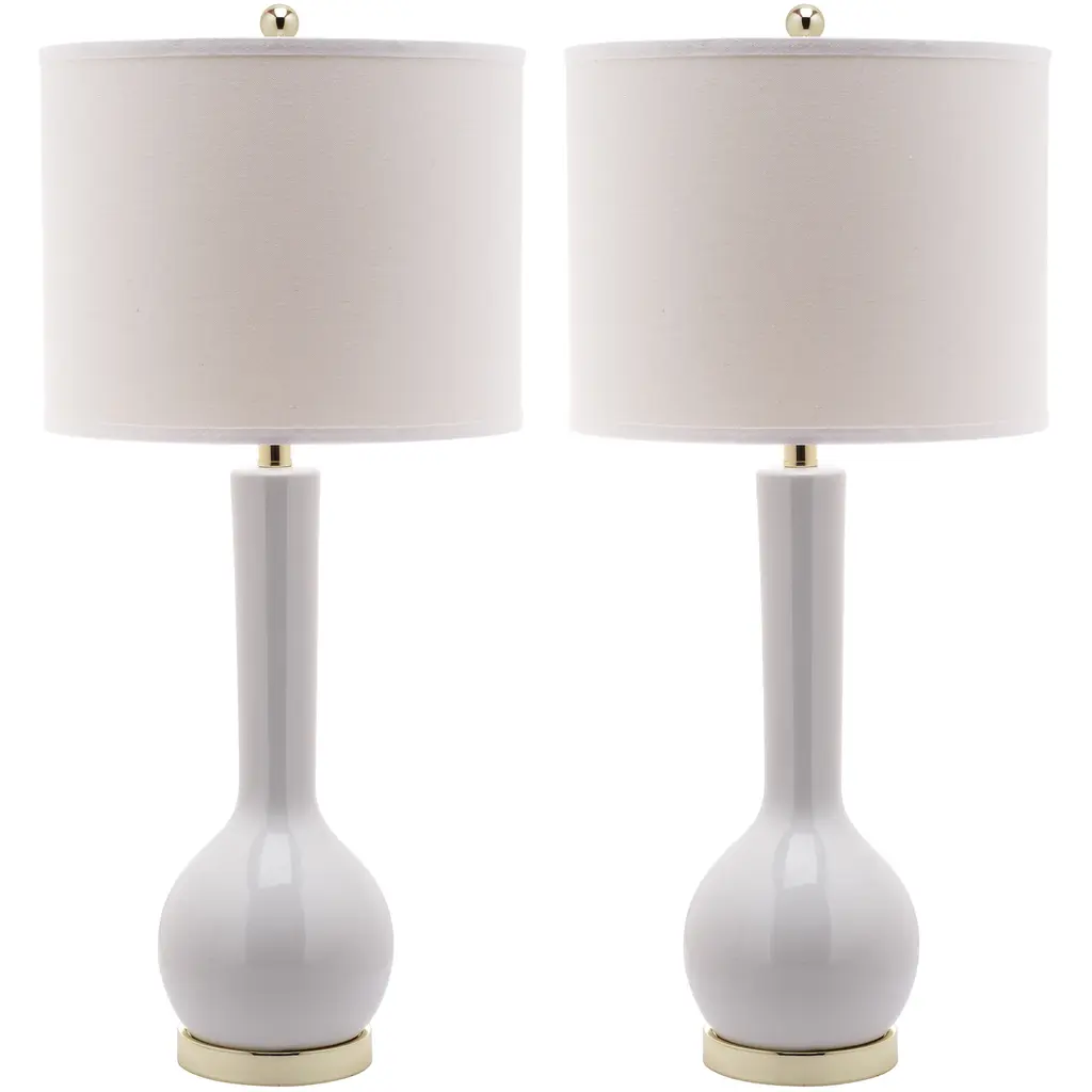 Safavieh Lighting 31-Inch Mae Long Neck Ceramic White Table Lamp (Set Of 2) - 14"x14"x30.5" - 14"x14"x30.5"