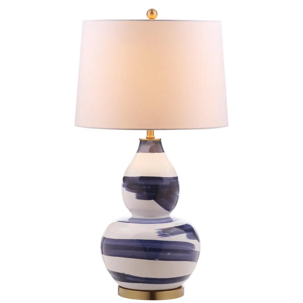 Inspired by contemporary artisans, this striking table lamp is a work of art. Finely crafted, its smooth, curved body features a bold blue and white pattern that blends into any living room. Used as a focal point or in pairs, its shade is complimentary.. - SAFAVIEH highest quality and unmatched style