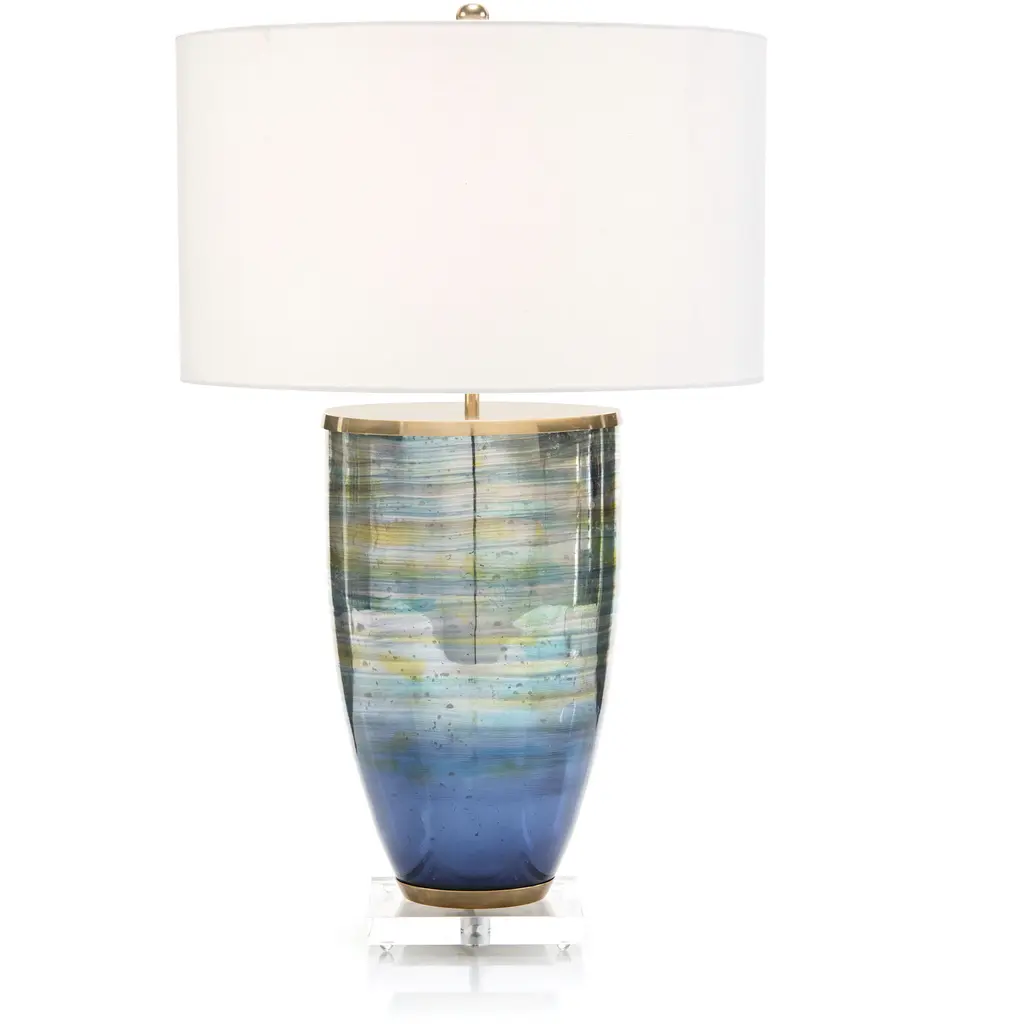 Inspired by contemporary artisans, this striking table lamp is a work of art. Finely crafted, its smooth, curved body features a bold brown and white pattern that blends into any living room. Used as a focal point or in pairs, its shade is complimentary.