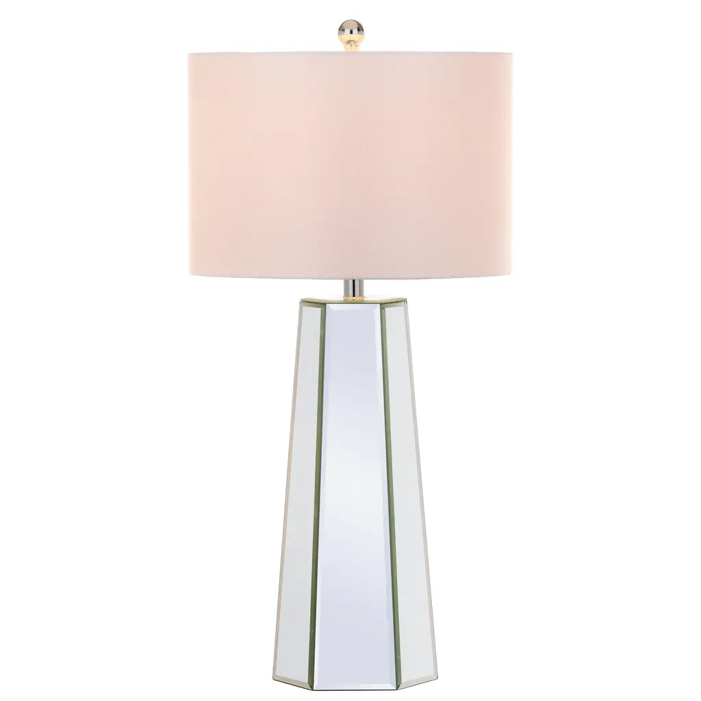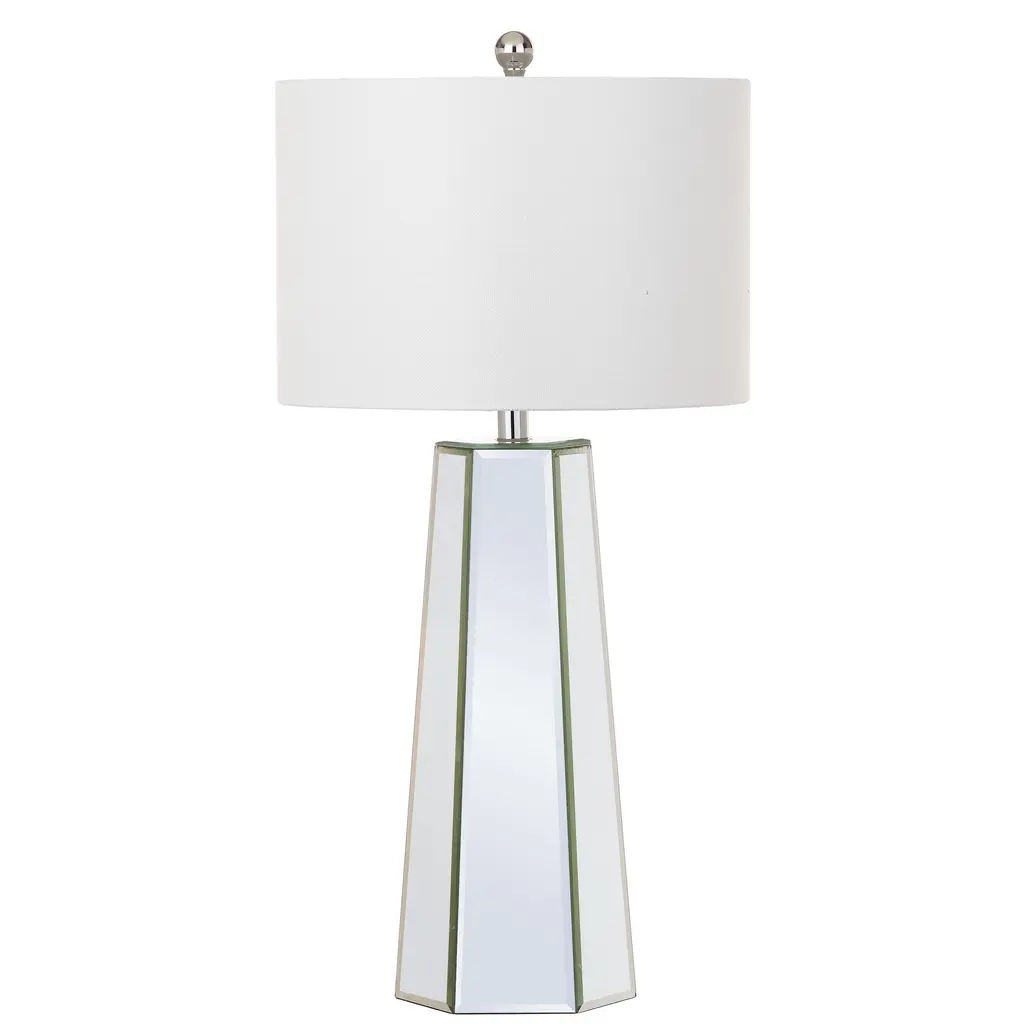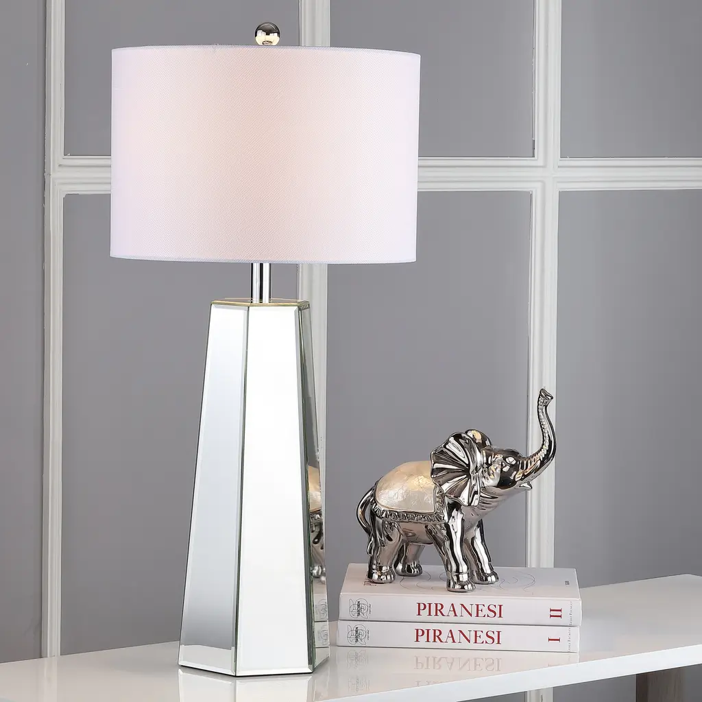Designed to reflect the extravagant style of the boudoirs of Old Hollywood s grand dames, this traditional mirror table lamp (set of 2) is a classic. Paired with chic chrome detail, it reflects flattering, diffused light through its crisp off-white shade.Features:Number of Light: 2 LightsLight Bulb Type: Compact Fluorescent - CFLShade Material: Cotton ThreadBulb Wattage: 13WProduct Features: Bulbs Included, Energy EfficientCrafted of MetalHeight: 23 in or moreLumens: 830Setting: IndoorSwitch Type: Rotary SwitchLighting Style: Contemporary, TransitionalColor: CLEARMeasures 15 inches x 15 inches x 31 inches