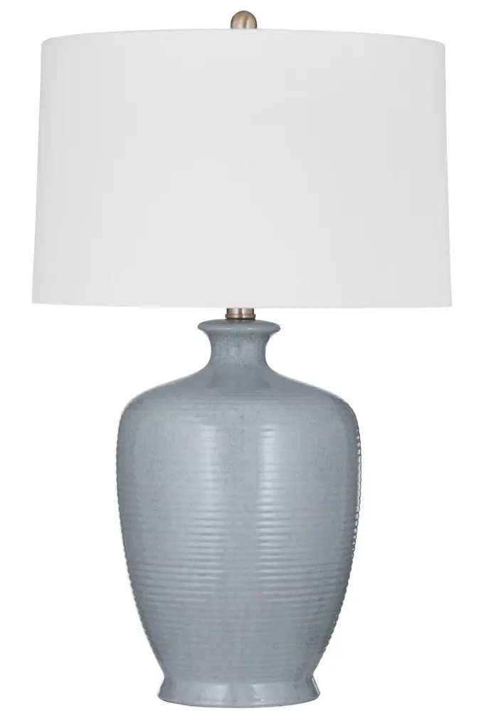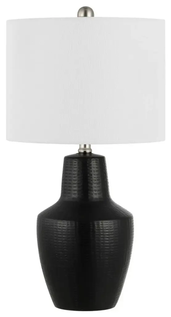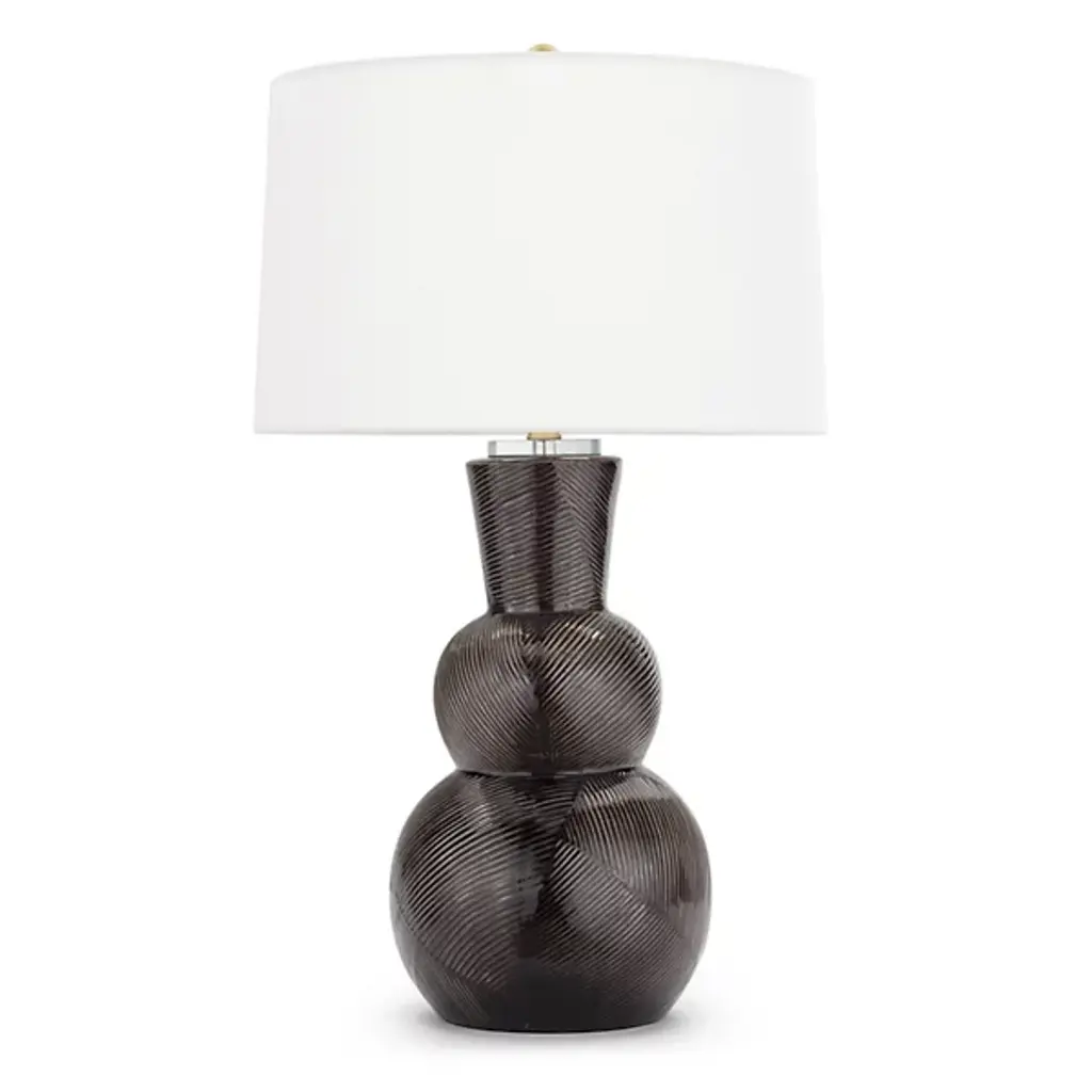 Designed after ancient artifacts unearthed from ageless hidden cities, this Alria Table Lamp is a cultured artistic treasure. Alria is elegant yet dramatic in its soothing vase silhouette, and the sleek textured accents running across its dark brown ceramic make Alria totally today.