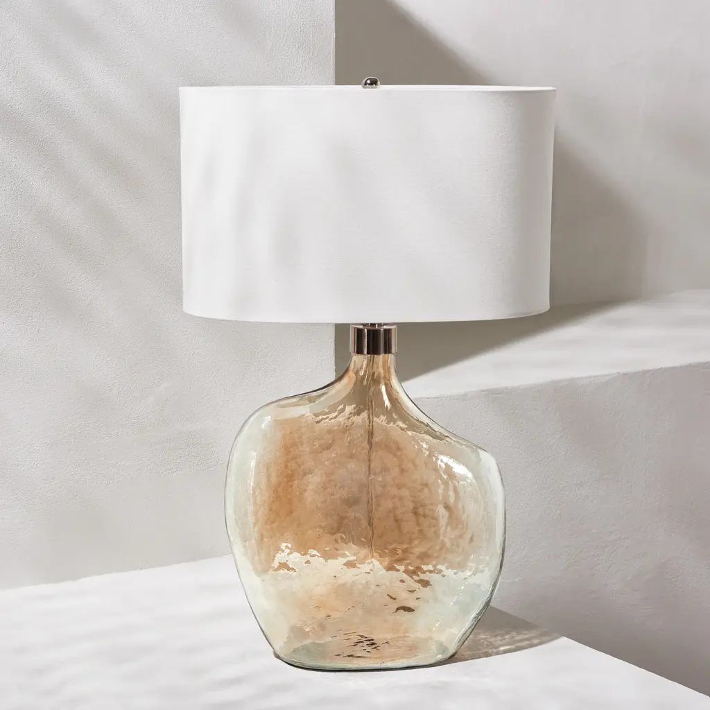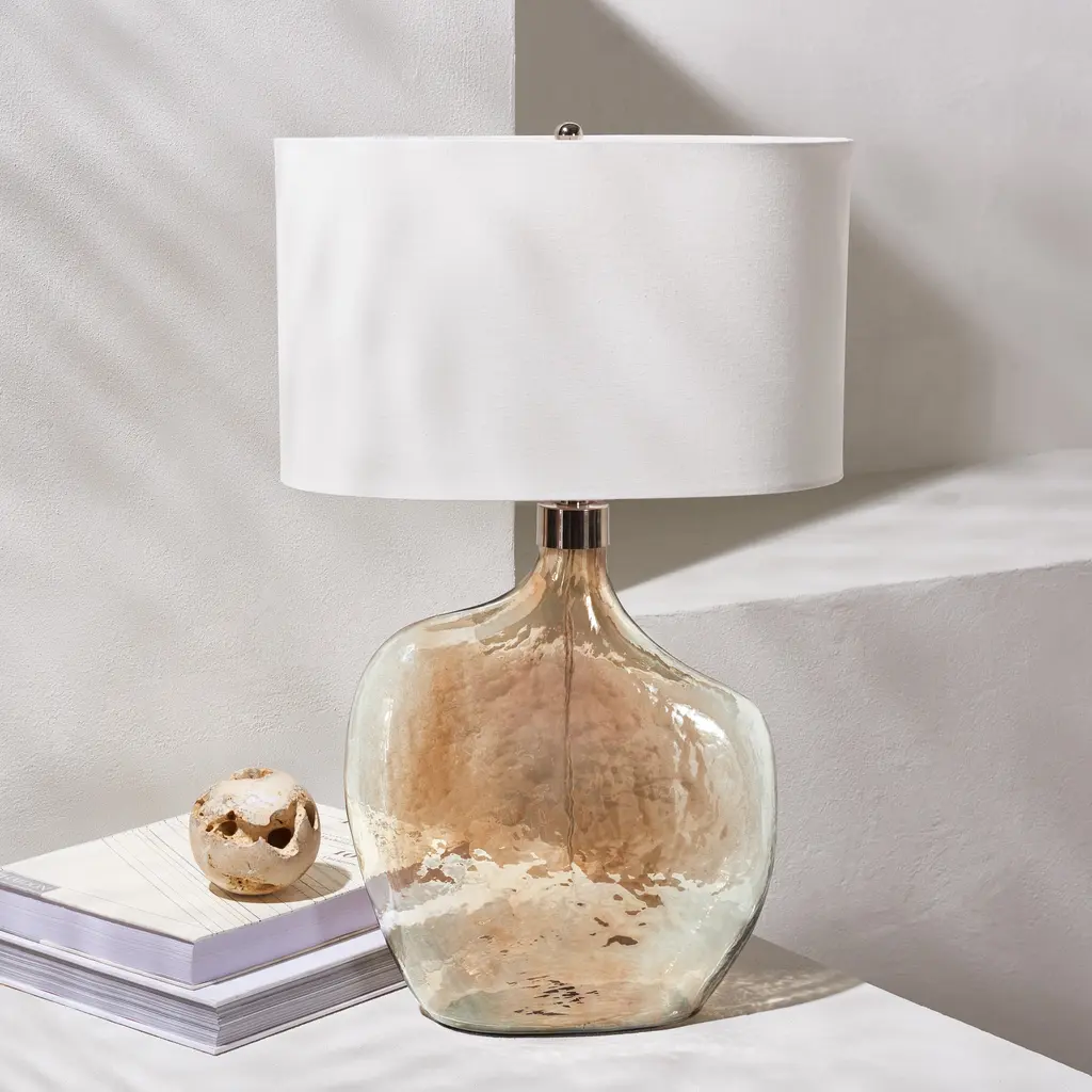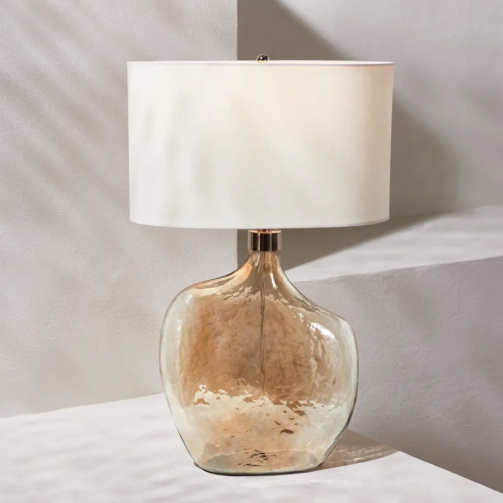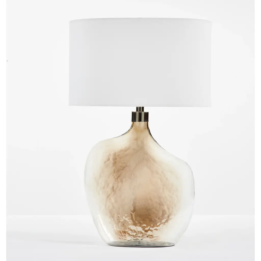 An ethereal expression of modern art, this Celensa Table Lamp embodies the essence of elegance. Celensa's creatively contoured glass body abounds with a flowing sense of motion, its intriguing mixture of gold and silver tones further enhancing its diaphanous depth.