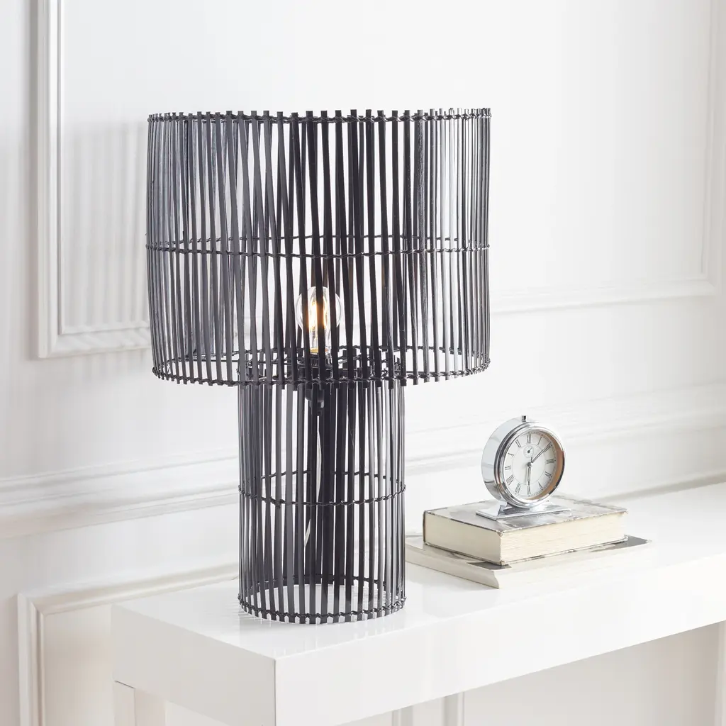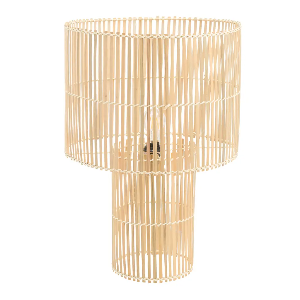 Bring a dose of warmth and character to your home with our Elara table lamp. The modern profile of the lamp is uplifted with an open framework. Enriched with the textures and warmth of bamboo, our breezy table lamp brings depth and drama to your home. Its minimal yet intricate design makes it a versatile addition to your side table or credenza. Our table lamp lends a warm and dappled glow through its airy frame to light up any surface.