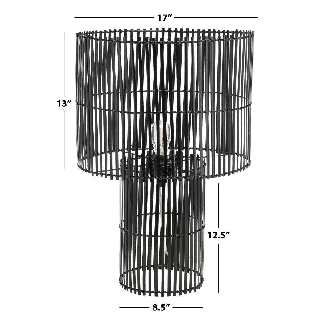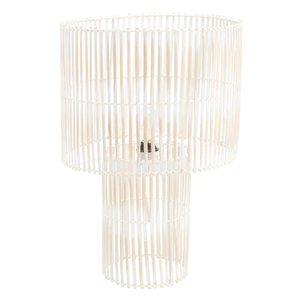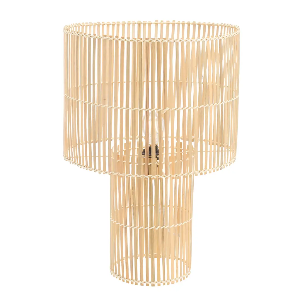 Bring a dose of warmth and character to your home with our Elara table lamp. The modern profile of the lamp is uplifted with an open framework. Enriched with the textures and warmth of bamboo, our breezy table lamp brings depth and drama to your home. Its minimal yet intricate design makes it a versatile addition to your side table or credenza. Our table lamp lends a warm and dappled glow through its airy frame to light up any surface.