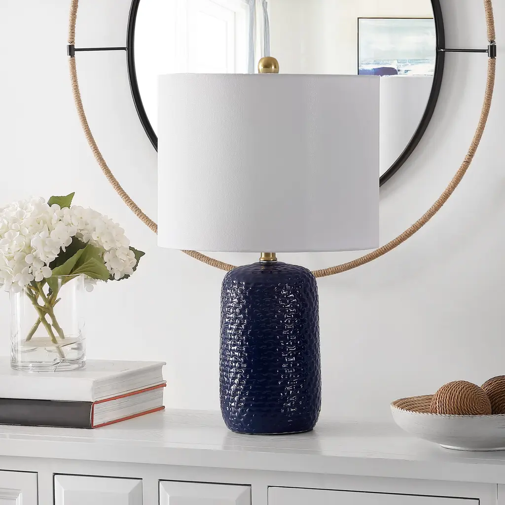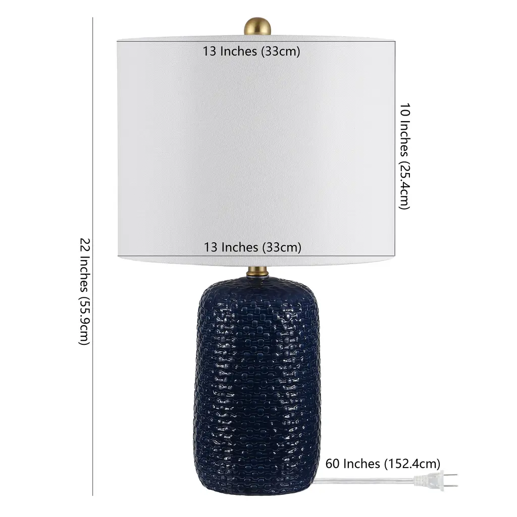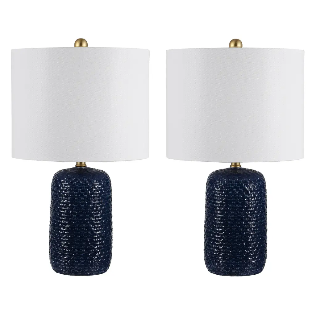 Safavieh Lighting Huxley 22-Inch Ceramic Led Table Lamp (Set Of 2) - 13" W X 13" L X 22" H - Navy Blue
