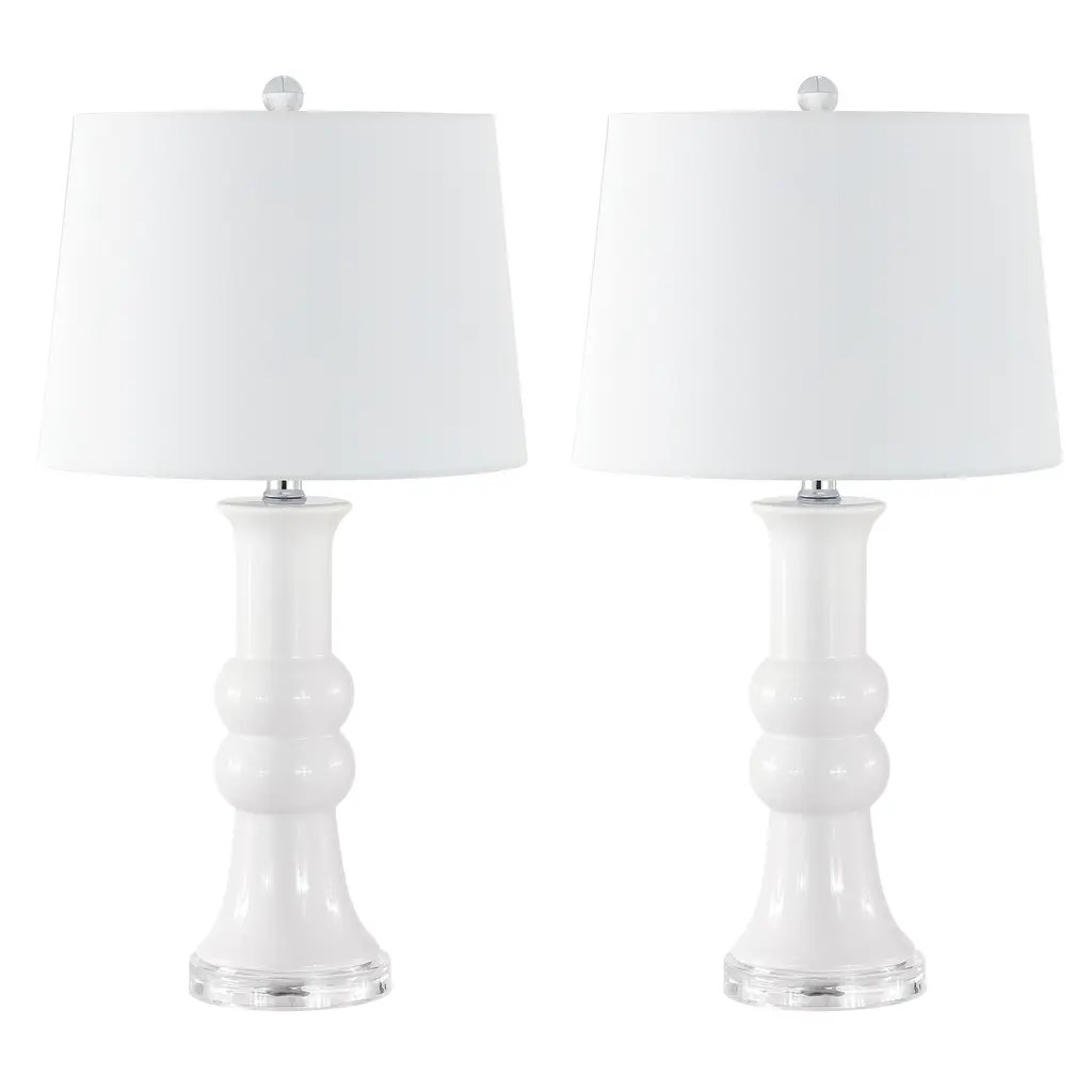 Good taste is always in style, and this Lamber Table Lamp abounds with refined sophistication. Lamber's updated hourglass silhouette in clean white ceramic emanate a decadent sense of motion reminiscent of modern art, and its crystal clear acrylic base gives an airy, floating look. Sold in sets of two.