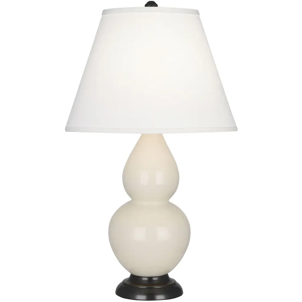 This Larcia Table Lamp abounds with an artistic sense of motion. An angled double gourd hourglass silhouette shines in finely sculpted white ceramic, while a white empire shade balances the look