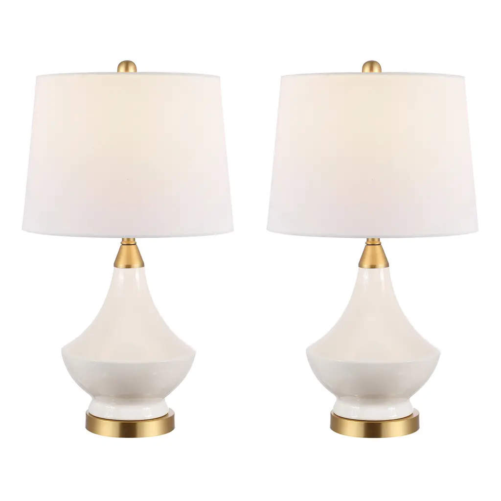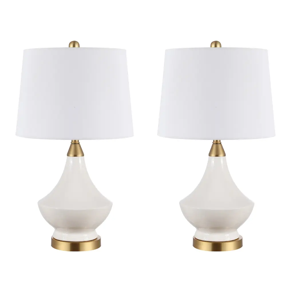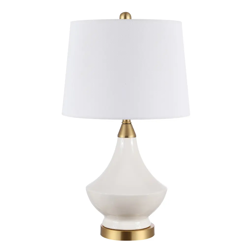 A modern glam interpretation of exotic Arabian pottery, this Marlowe Table Lamp gives any room an eye catching shine. Marlowe's boldly sculpted white ceramic is dramatically elevated with glamorous gold finished accents, making a fabulous statement in contemporary interiors. Sold in sets of two.