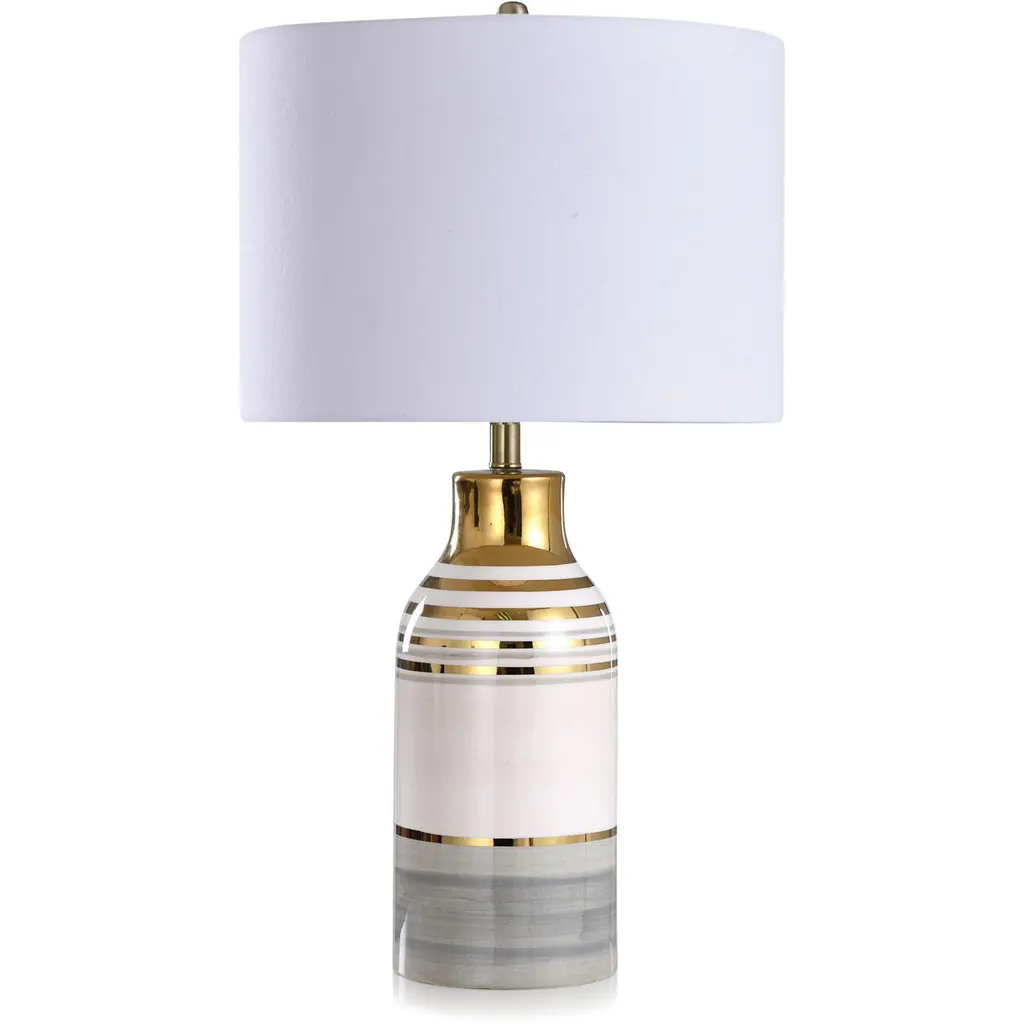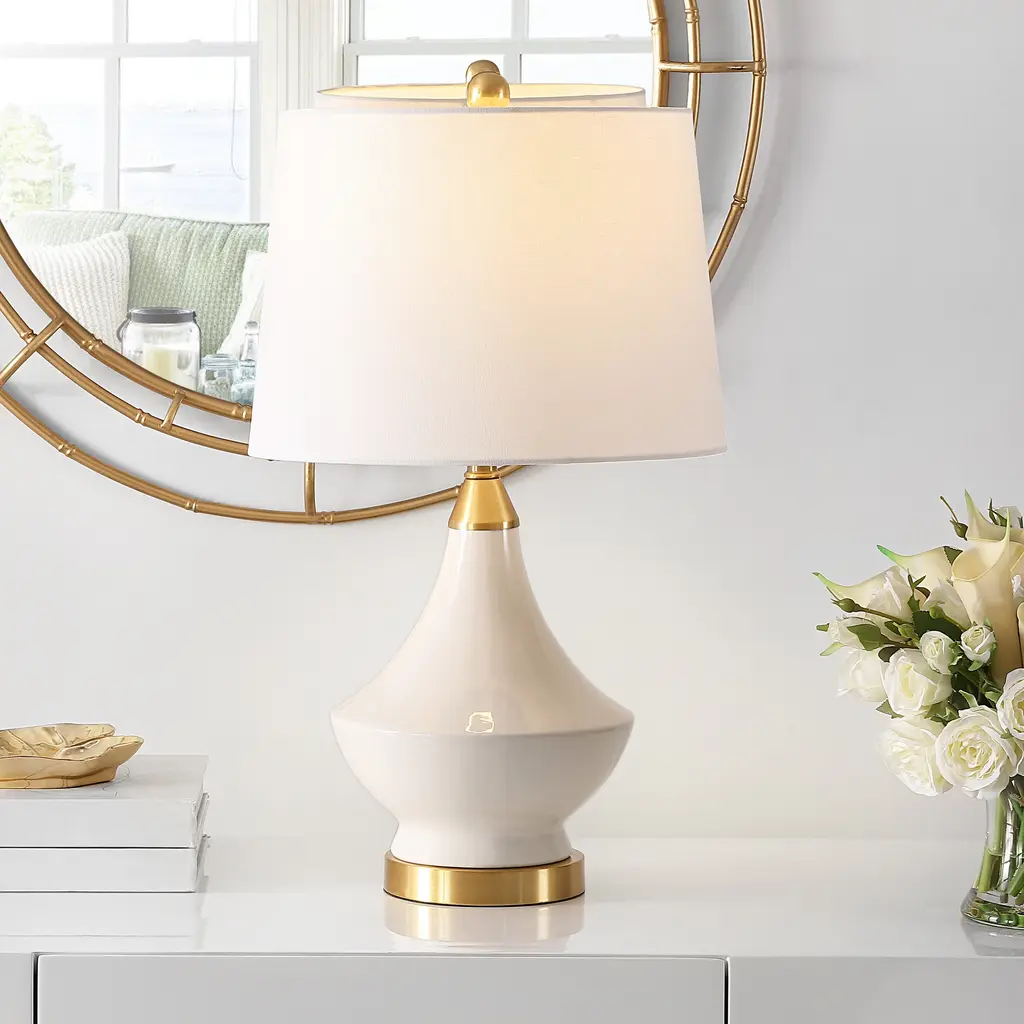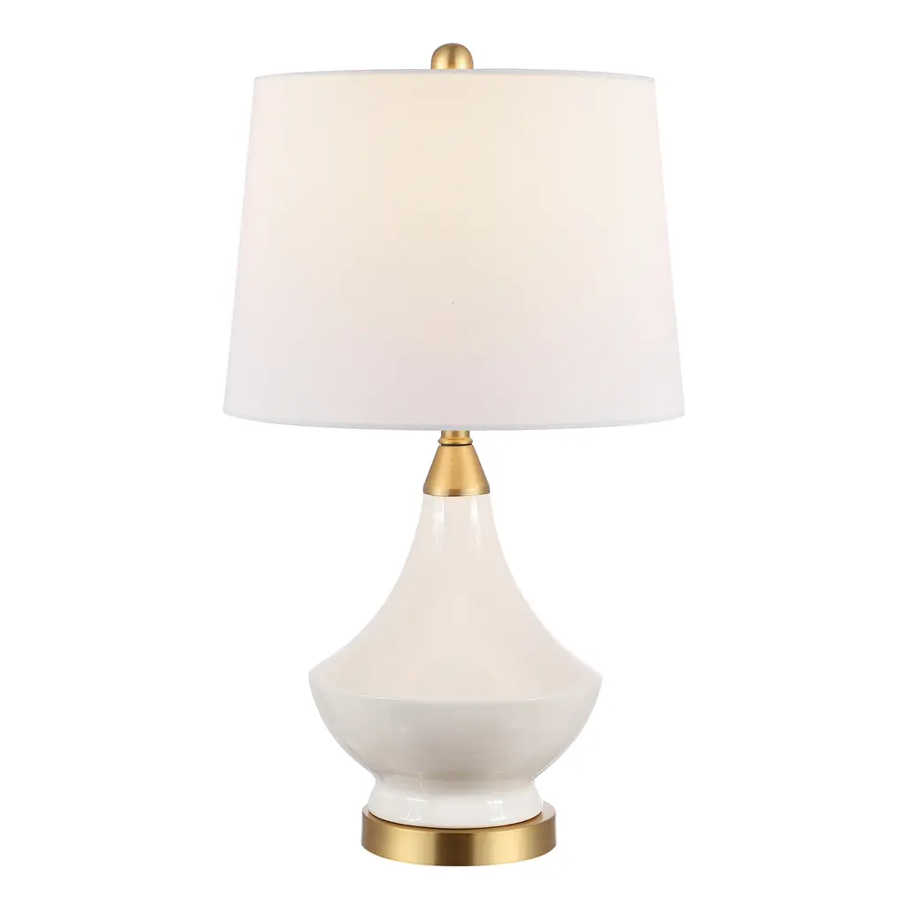 A modern glam interpretation of exotic Arabian pottery, this Marlowe Table Lamp gives any room an eye catching shine. Marlowe's boldly sculpted white ceramic is dramatically elevated with glamorous gold finished accents, making a fabulous statement in contemporary interiors. Sold in sets of two.
