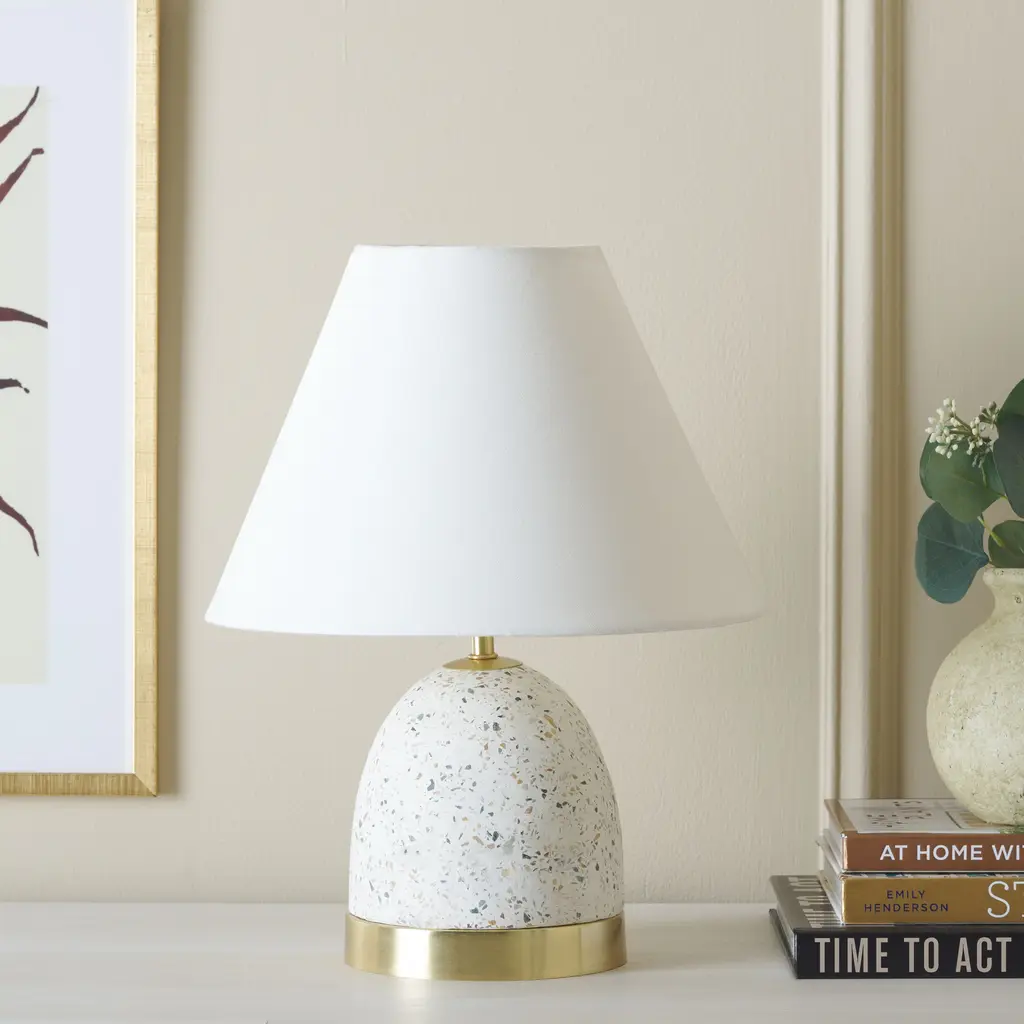 Safavieh Lighting Nicolai 16-Inch Table Lamp (Led Bulb Included) - 12wx12dx16h - White Terrazzo/gold