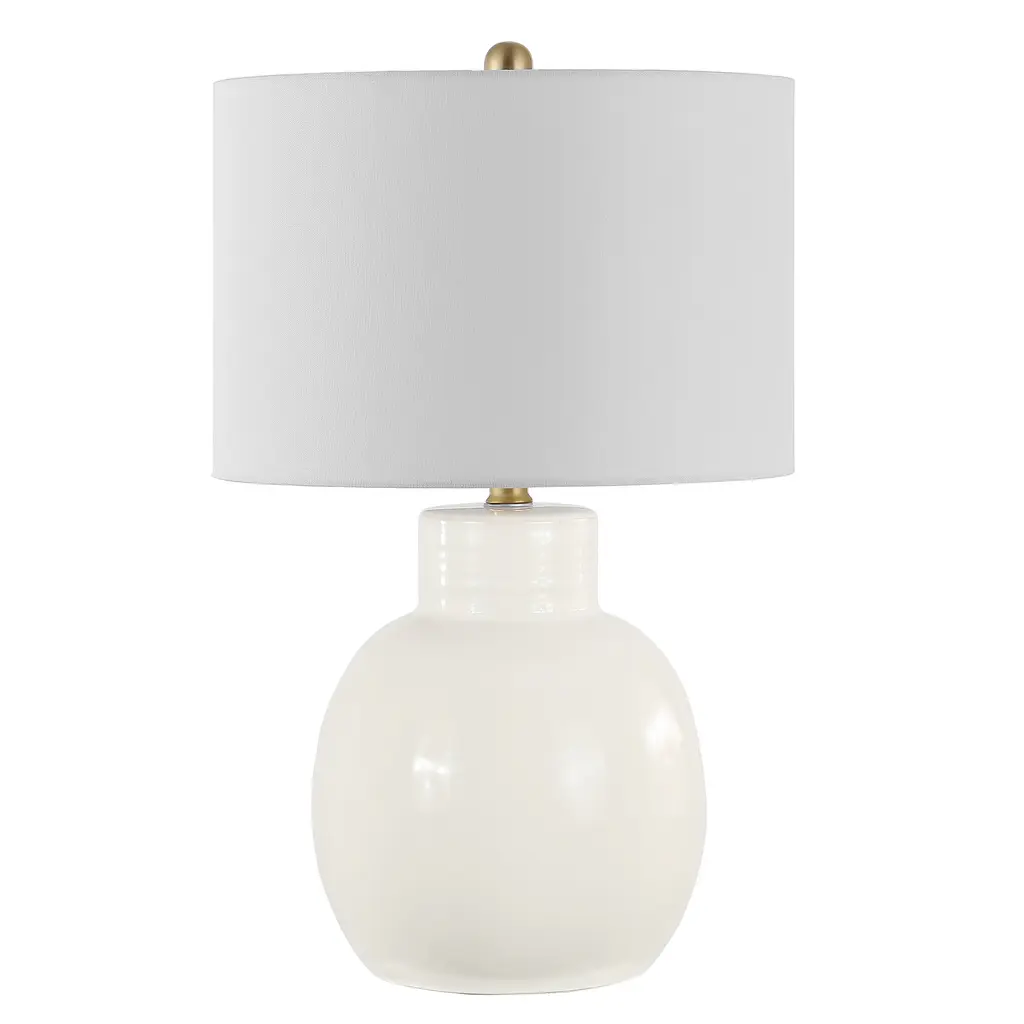 Sophisticated in its simplicity, this Syra Table Lamp is ideal for today's classic-contemporary interiors. Syra's smooth ivory ceramic and white drum shade seamlessly blend with any room's color scheme, making it a designer favorite.