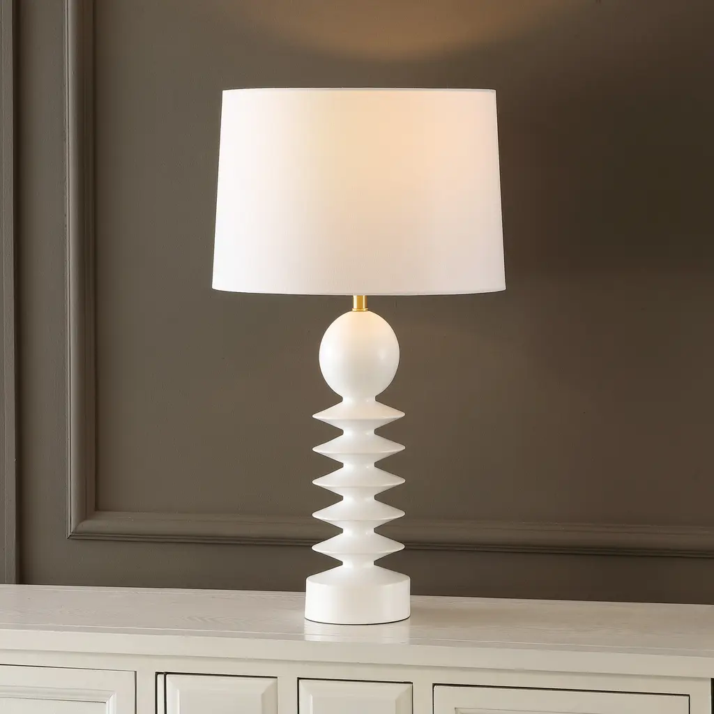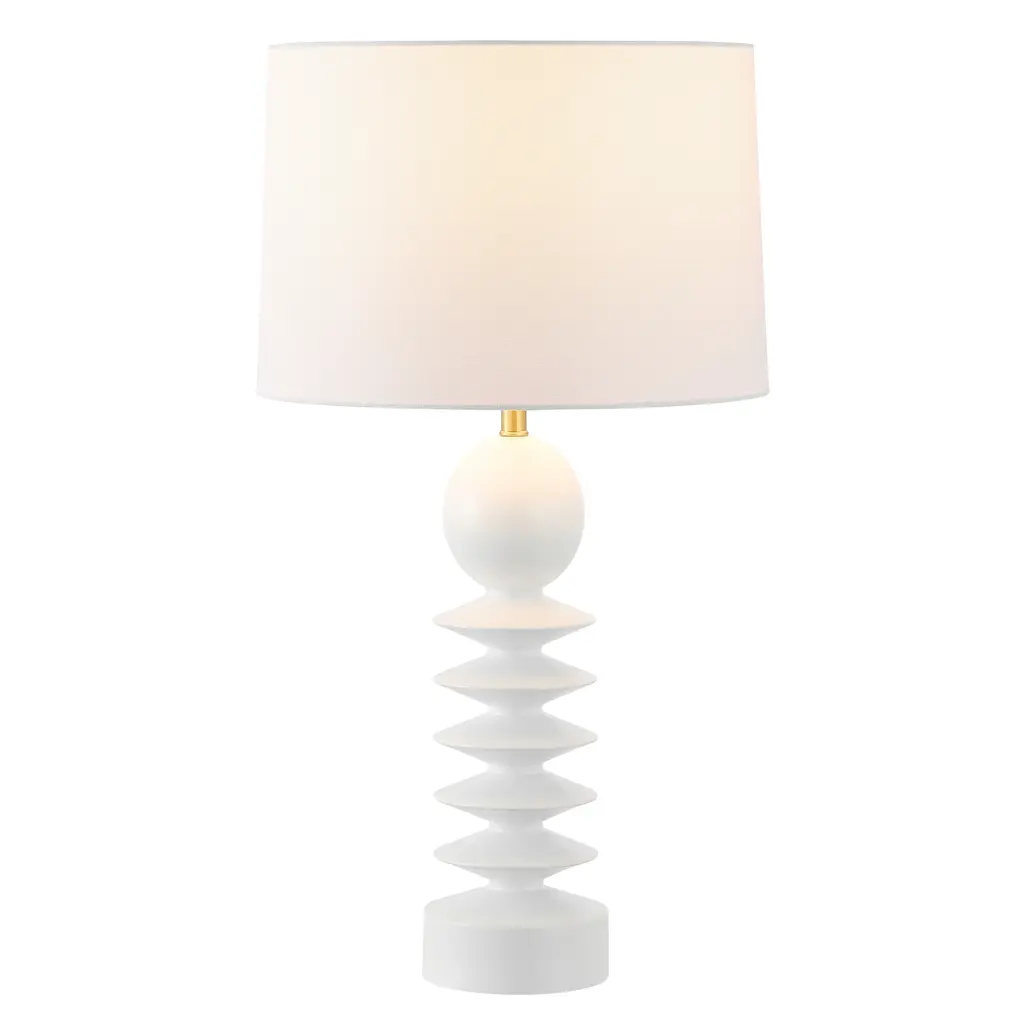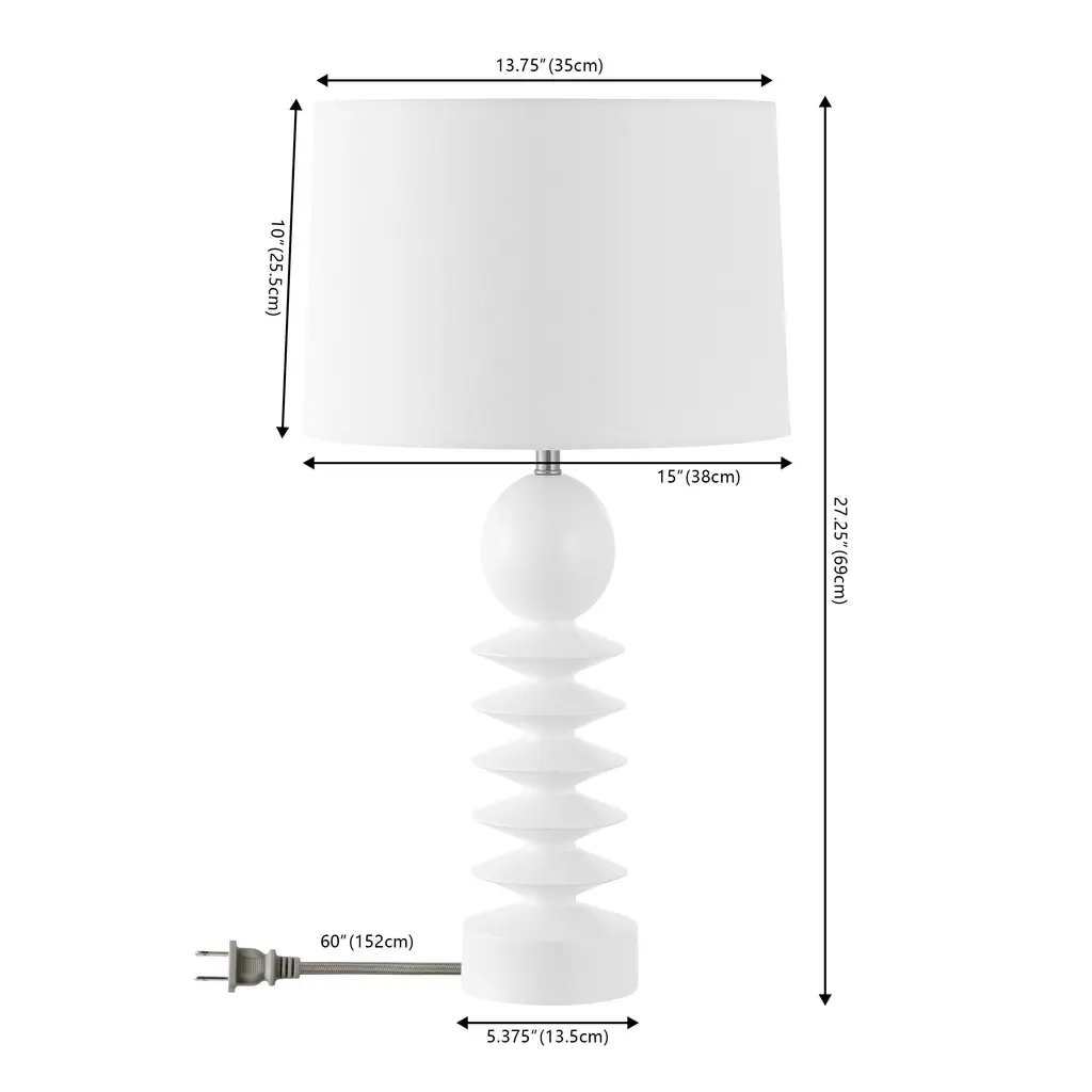Give a chic and elegant update to your tabletop with our Loza table lamp. Featuring a sculptural silhouette, our table lamp adds drama and character to any surface. It showcases a beautifully ridged silhouette to lend an artful edge to your decor. Crafted from resin, our table lamp remains a graceful and versatile choice for any room. Its fabric shade diffuses soft light to serve as a stunning focal point on your nightstand, console, or end table.