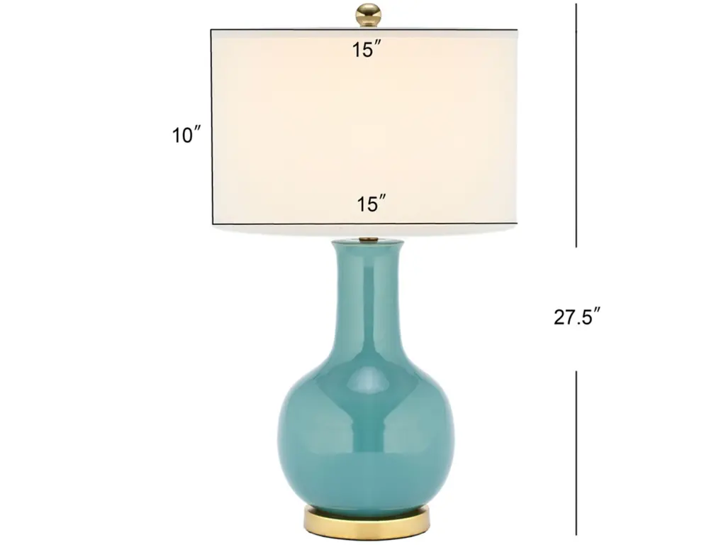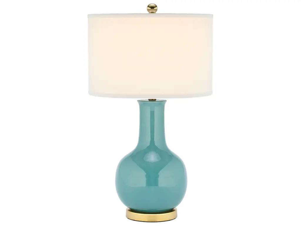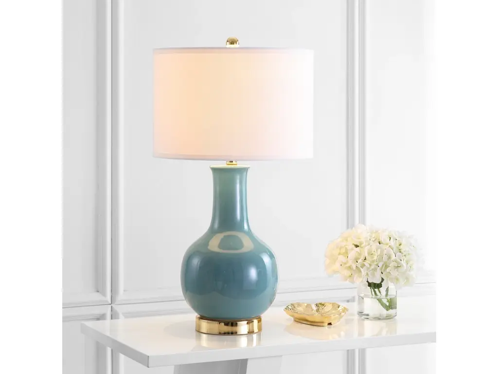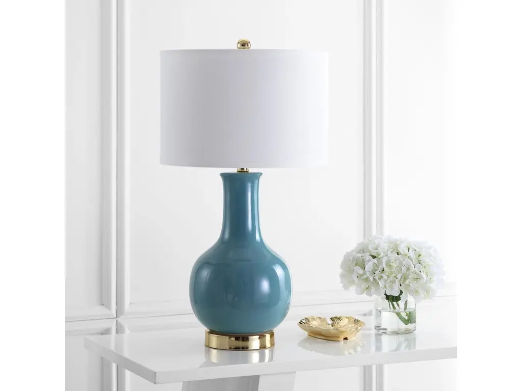 This curvaceous table lamp is sure to illuminate any room with elegance and contemporary flair. Crafted of glazed ceramic, its goregous gourd body is accented with goldtone-finished metal at the neck and base and topped with a hardback drum shade that's simply delightful.