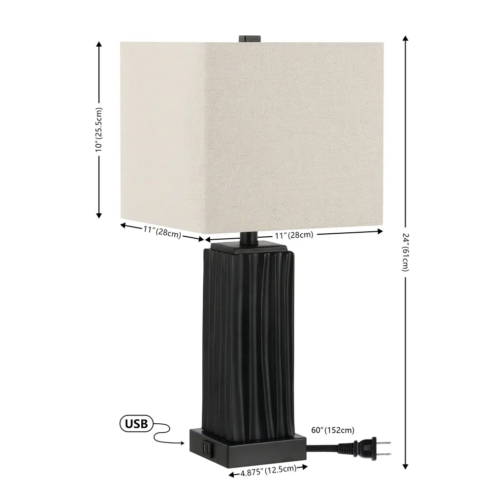 Give a contemporary update to your tabletop with the sleek style and sensuous details of our Park table lamp. The clean lines and crisp angles of the lamp are softened with an organic and uneven ribbed detail. Combining modern style with an artisanal feel, our table lamp brings graceful style and drama to any corner. It features a beautiful oatmeal shade to diffuse a soft and warm glow upon your desk, console, or nightstand. Our stylish table lamp includes a built-in USB port to keep your devices charged and ready at all times.
