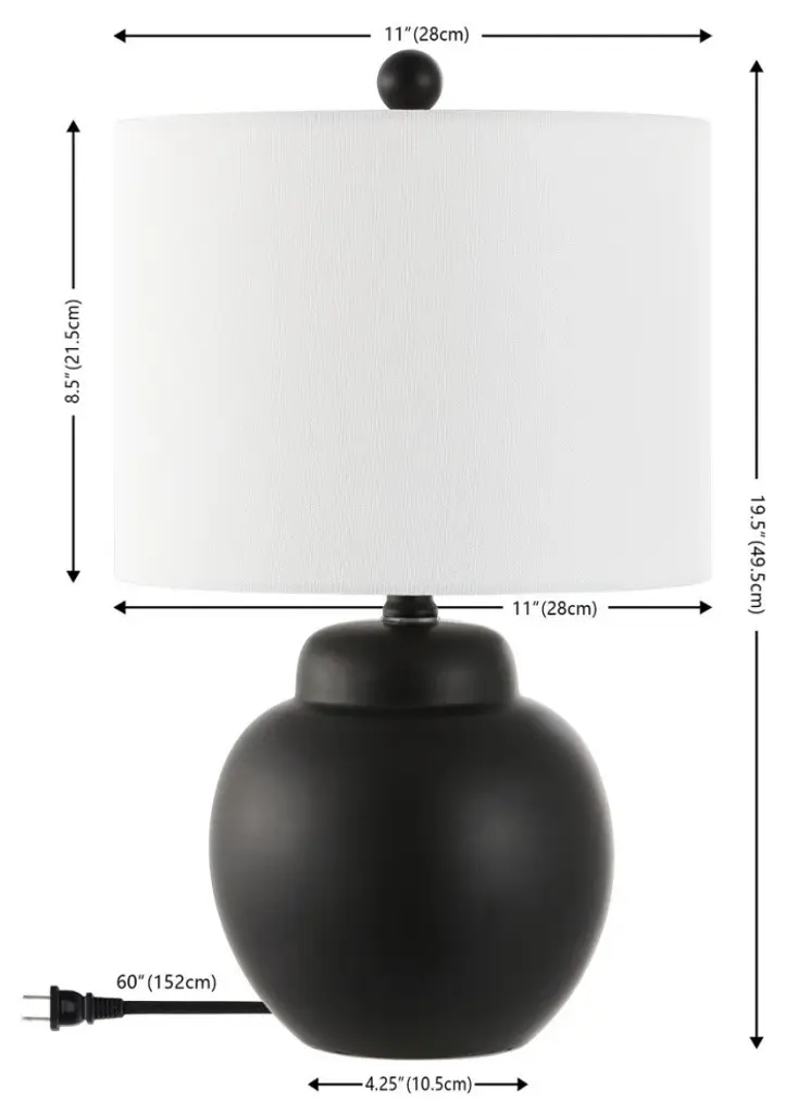 Elevate any bare surface with the grace and elegance of our Roux table lamp. Boasting a voluminous and softly rounded ceramic body, our table lamp attains a sleek and sensuous presence. The lamp is completed with a black finish to sit easily and gracefully in a variety of styles and decor. It features a white drum shade to become a charming and effortless addition to any tabletop. Our stylish table lamp delivers soft illumination and a dose of elegance to your entryway, bedroom, or living space.