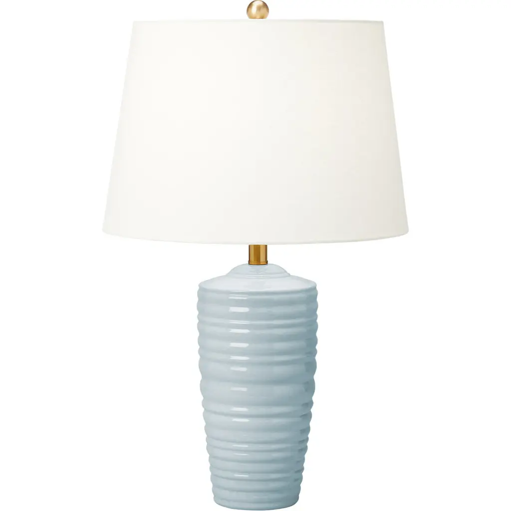 Illuminate your decor with the artistic, sculptural elegance of this Wembli Table Lamp. Designed to bring decadent intrigue to today''s contemporary interiors, Wembli''s crystal clear acrylic base adds an extra layer of visual depth to the flowing sense of motion emanating from its undulating robin''s egg blue ceramic.Lamp Certified: ULType of bulb included: A19Number of bulb(s) included: 1Max Wattage :100Light Bulb Base Type: E26