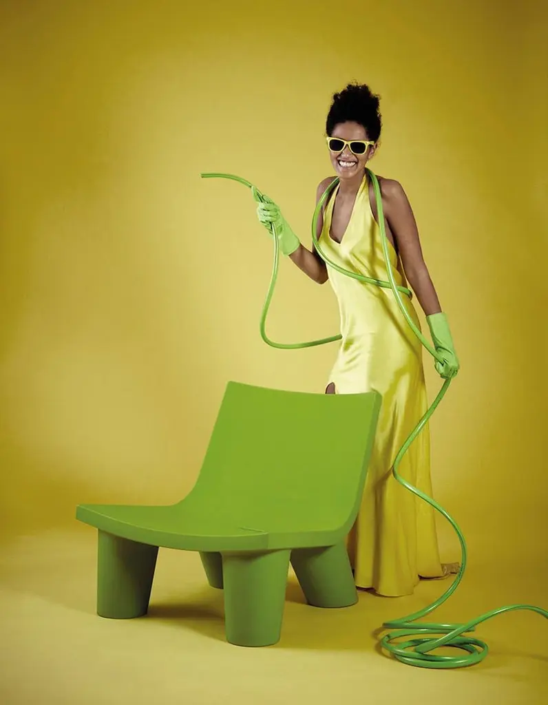 Saffron Yellow Low Lita Chair by OTTO StudioDesigned by Paola Navone.Dimensions: D 80 x W 78 x H 70 cm. Seat Height: 36 cm.Materials: Polyethylene.Weight: 13 kg.Available in different color options. This product is suitable for indoor and outdoor use. Also available in a 10th anniversary edition and a lacquered version, with glossy or matte finishes. An additional cushion made of rubber filling with an outdoor waterproof acrylic cover (removable) is available. Prices may vary. Please contact us. Created by the famous Italian designer Paola Navone, Low Lita armchair becomes immediately one of the most popular products of the whole Slide production. Low Lita is made in polyethylene with the technology of rotational moulding and everybody falls in love with it for its linear and funny design. Its shape and its simplicity make Low Lita armchair suitable for every kind of indoor and outdoor settings, as gardens, terraces or contract with contemporary furnishing. Its comfortable seat and its essential shape evoke relax and leisure.Our stories happen in places precious to us. SLIDE was born from the desire to produce furniture and light to create the perfect atmosphere that highlights emotions.Design is inspiration, surprise, joy. It's the amazement of seeing something unique for the first time. It's creating spaces to feel good and live surrounded by beauty. It means giving a personal imprint to indoor and outdoor spaces. It means choosing your ideal element that is the perfect setting for emotions and experiences, which become indelible memories. The founder Giò Colonna Romano knows this well, combining his fervent imagination with thirty years of know-how in the processing of plastic resins, giving birth to SLIDE in 2002. The first note of amazement is the luminous furniture, which immediately became a must have in the world of events. Since 2015, his son Marco Colonna Romano has taken over the reins of the company, with the same desire to grow and innovate as his father. Thanks to a new panache and the team of young people it surrounds itself with, SLIDE becomes a beloved company for outdoor furniture: new shapes, materials and tactile textures have won the hearts and ideas of architects and interior designers around the world. SLIDE has thus created complete collections and furnishings, with new shapes, whose lines arise from collaboration with internationally renowned designers of the caliber of Alessandro Mendini, Paola Navone, Stefano Giovannoni, Fabio Novembre, Marcel Wanders, Karim Rashid, Marc Sadler, Francesco Favaretto and Marcantonio.New materials were chosen and inserted, initially soft and rigid polyurethane, and then comfortable cushions, waterproof fabrics, tactile textures ideal for completing the polyethylene furnishings with taste and class. But SLIDE does not forget its first essence, lighting: in recent years it has developed a line of much more technical lamps for large areas, essential in shape but with great visual impact. For the first time, Slide has managed to give an artisanal twist to an industrial process: to meet the increasingly high demands of living, the production creates non-replicable shades, in which every small imperfection enhances the industrial process and makes each piece unique . Because Slide's strength has always been the careful reading of the market, the creation of something that didn't exist and which then became necessary: here Slide continues its production in Buccinasco, on the outskirts of Milan, but its name and its products reach more than 130 countries around the world.