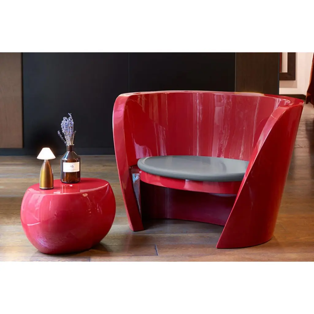 Saffron Yellow RAP Chair by Karim RashidDimensions: D 78 x W 115 x H 75 cm. Seat Height: 36 cm.Materials: Polyethylene.Weight: 24 kg.Available in different color options. This product is suitable for indoor and outdoor use. Available in standard and lacquered (glossy/matte) colors. Also available in a lighted version. Cushions are available. Prices may vary. Please contact us. Our stories happen in places precious to us. SLIDE was born from the desire to produce furniture and light to create the perfect atmosphere that highlights emotions.Design is inspiration, surprise, joy. It's the amazement of seeing something unique for the first time. It's creating spaces to feel good and live surrounded by beauty. It means giving a personal imprint to indoor and outdoor spaces. It means choosing your ideal element that is the perfect setting for emotions and experiences, which become indelible memories. The founder Giò Colonna Romano knows this well, combining his fervent imagination with thirty years of know-how in the processing of plastic resins, giving birth to SLIDE in 2002. The first note of amazement is the luminous furniture, which immediately became a must have in the world of events. Since 2015, his son Marco Colonna Romano has taken over the reins of the company, with the same desire to grow and innovate as his father. Thanks to a new panache and the team of young people it surrounds itself with, SLIDE becomes a beloved company for outdoor furniture: new shapes, materials and tactile textures have won the hearts and ideas of architects and interior designers around the world. SLIDE has thus created complete collections and furnishings, with new shapes, whose lines arise from collaboration with internationally renowned designers of the caliber of Alessandro Mendini, Paola Navone, Stefano Giovannoni, Fabio Novembre, Marcel Wanders, Karim Rashid, Marc Sadler, Francesco Favaretto and Marcantonio.New materials were chosen and inserted, initially soft and rigid polyurethane, and then comfortable cushions, waterproof fabrics, tactile textures ideal for completing the polyethylene furnishings with taste and class. But SLIDE does not forget its first essence, lighting: in recent years it has developed a line of much more technical lamps for large areas, essential in shape but with great visual impact. For the first time, Slide has managed to give an artisanal twist to an industrial process: to meet the increasingly high demands of living, the production creates non-replicable shades, in which every small imperfection enhances the industrial process and makes each piece unique . Because Slide's strength has always been the careful reading of the market, the creation of something that didn't exist and which then became necessary: here Slide continues its production in Buccinasco, on the outskirts of Milan, but its name and its products reach more than 130 countries around the world.