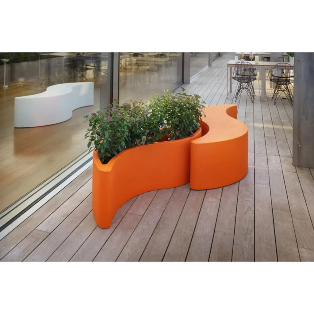Saffron Yellow Wave Pot by Giò Colonna RomanoDimensions: D 60 x W 160 x H 45 cm.Materials: Polyethylene.Available in standard and lacquered colors. This product is suitable for indoor and outdoor use. Please contact us.Our stories happen in places precious to us. SLIDE was born from the desire to produce furniture and light to create the perfect atmosphere that highlights emotions.Design is inspiration, surprise, joy. It's the amazement of seeing something unique for the first time. It's creating spaces to feel good and live surrounded by beauty. It means giving a personal imprint to indoor and outdoor spaces. It means choosing your ideal element that is the perfect setting for emotions and experiences, which become indelible memories. The founder Giò Colonna Romano knows this well, combining his fervent imagination with thirty years of know-how in the processing of plastic resins, giving birth to SLIDE in 2002. The first note of amazement is the luminous furniture, which immediately became a must have in the world of events. Since 2015, his son Marco Colonna Romano has taken over the reins of the company, with the same desire to grow and innovate as his father. Thanks to a new panache and the team of young people it surrounds itself with, SLIDE becomes a beloved company for outdoor furniture: new shapes, materials and tactile textures have won the hearts and ideas of architects and interior designers around the world. SLIDE has thus created complete collections and furnishings, with new shapes, whose lines arise from collaboration with internationally renowned designers of the caliber of Alessandro Mendini, Paola Navone, Stefano Giovannoni, Fabio Novembre, Marcel Wanders, Karim Rashid, Marc Sadler, Francesco Favaretto and Marcantonio.New materials were chosen and inserted, initially soft and rigid polyurethane, and then comfortable cushions, waterproof fabrics, tactile textures ideal for completing the polyethylene furnishings with taste and class. But SLIDE does not forget its first essence, lighting: in recent years it has developed a line of much more technical lamps for large areas, essential in shape but with great visual impact. For the first time, Slide has managed to give an artisanal twist to an industrial process: to meet the increasingly high demands of living, the production creates non-replicable shades, in which every small imperfection enhances the industrial process and makes each piece unique . Because Slide's strength has always been the careful reading of the market, the creation of something that didn't exist and which then became necessary: here Slide continues its production in Buccinasco, on the outskirts of Milan, but its name and its products reach more than 130 countries around the world.