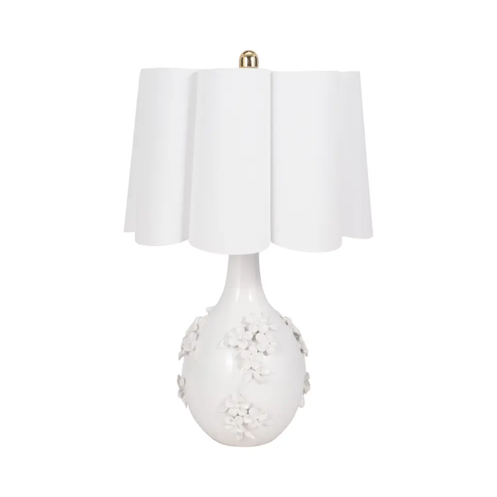 Sagebrook Home Cream Ceramic 25-Inch Floral Applique Table Lamp Elegance - 16" X 16" X 25" - Floral Applique Ivory - 16" X 16" X 25"