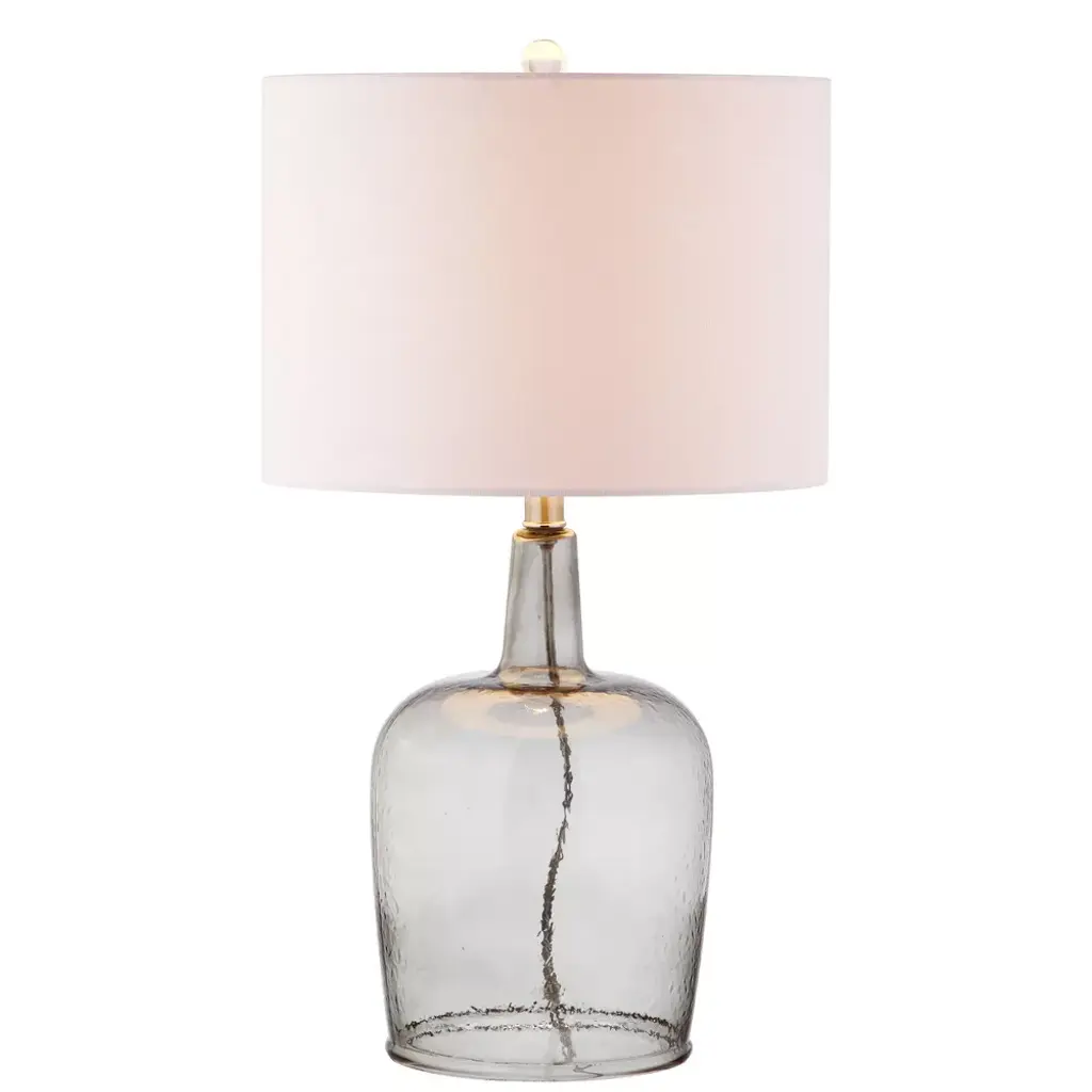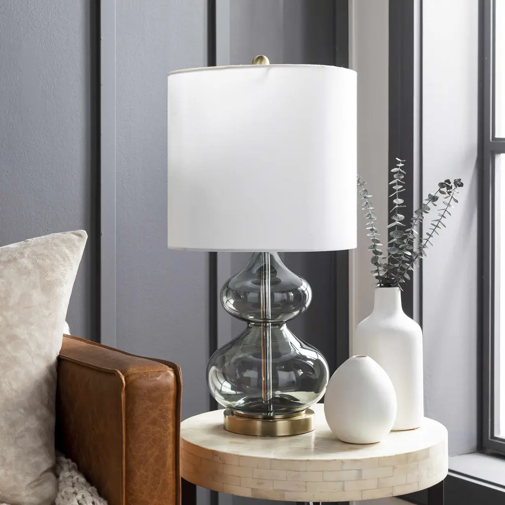 Collection: Saguiaran Colors: Charcoal, White, Olive, Translucent, Gold Material: Body: Glass,Shade (Outside): Linen,Shade (Inside): Polyester,Base: Iron,Finial: Iron Styles: Traditional Made In: China