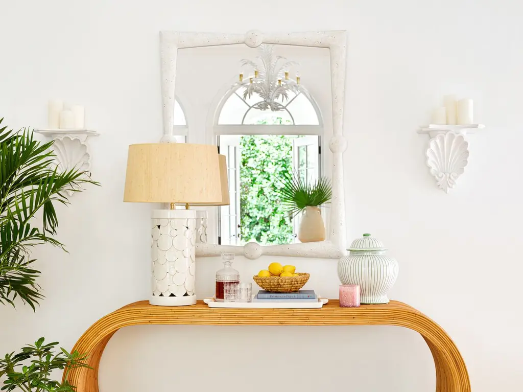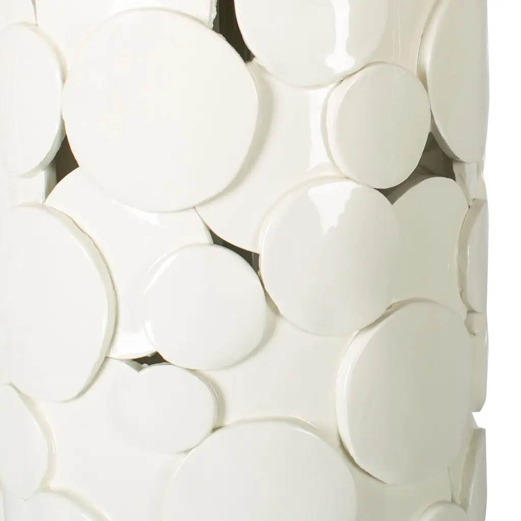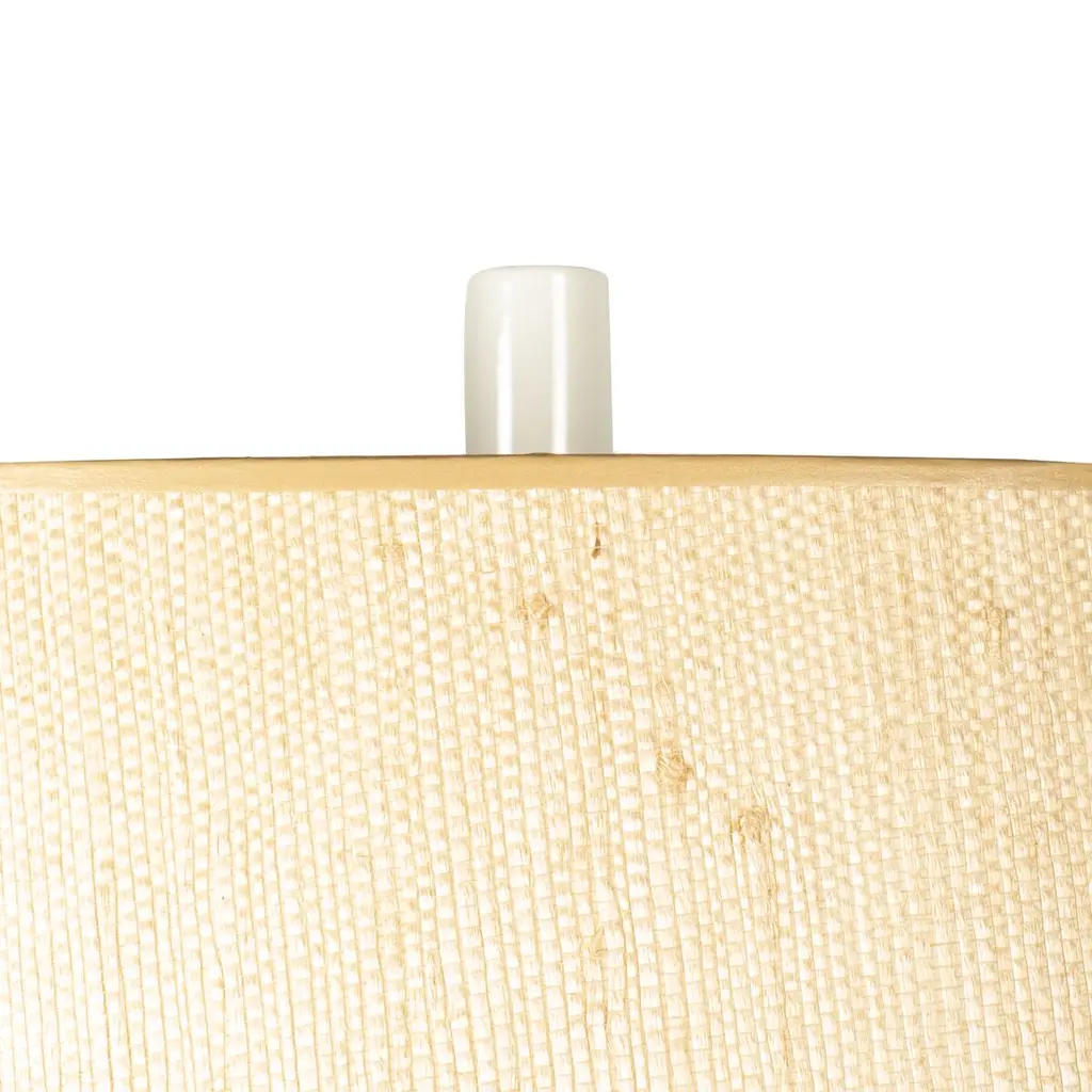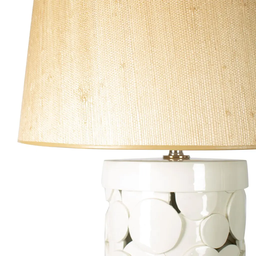 The glossy ceramic circles that make up this table lamp's body overlap in some areas and leave unexpected gaps in others, making this an intriguing addition to just about any style of room. The seagrass drum shade provides a fresh textural and tonal contrast.
