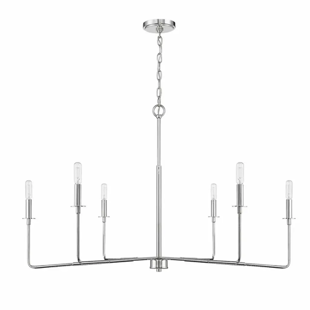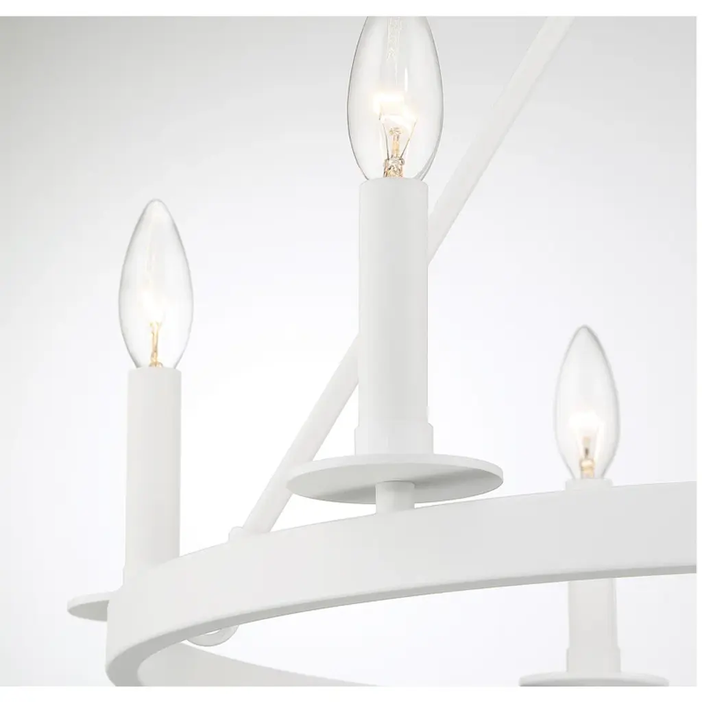 Expand indoor illumination with the wide-reaching and tasteful height of the Salerno Chandelier from Savoy House. A refined, simple design with plenty of reach and a rustic appeal, it descends via chain and stems from a stepped circular canopy, securing a round hub below that steadies several slender arms that arc out and then up. Each arm blooms a candelabra lamp from a small, circular bobeche, playing well with a vintage-style bulb to add an element of contrast to the fixture’s assured elegant simplicity.