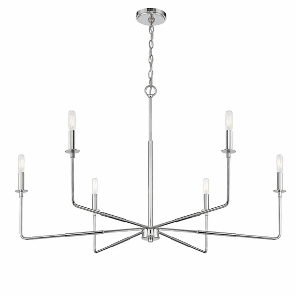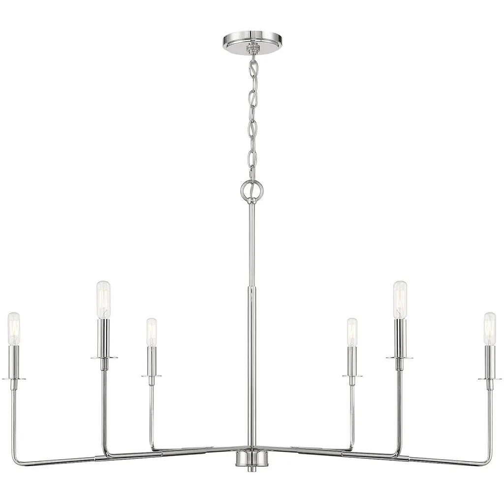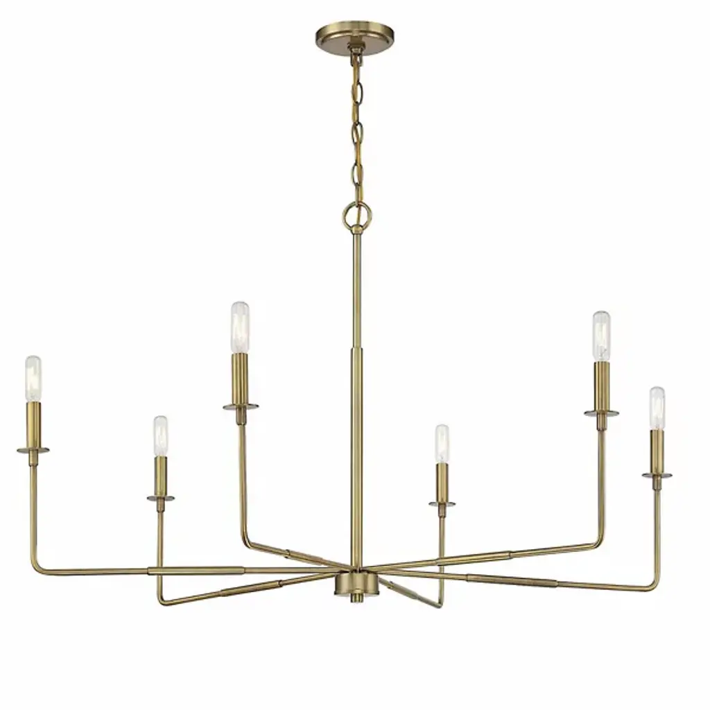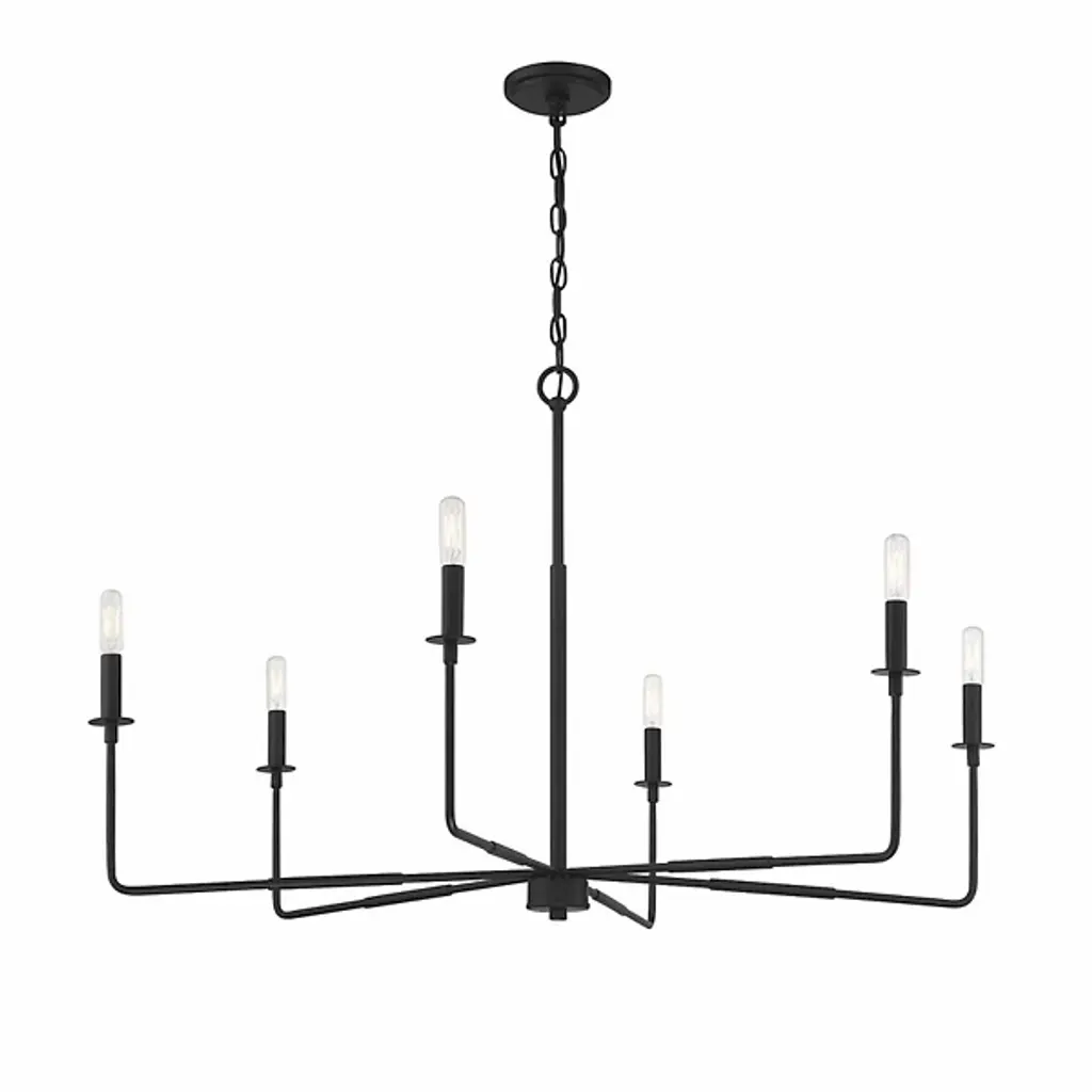Expand indoor illumination with the wide-reaching and tasteful height of the Salerno Chandelier from Savoy House. A refined, simple design with plenty of reach and a rustic appeal, it descends via chain and stems from a stepped circular canopy, securing a round hub below that steadies several slender arms that arc out and then up. Each arm blooms a candelabra lamp from a small, circular bobeche, playing well with a vintage-style bulb to add an element of contrast to the fixture’s assured elegant simplicity.